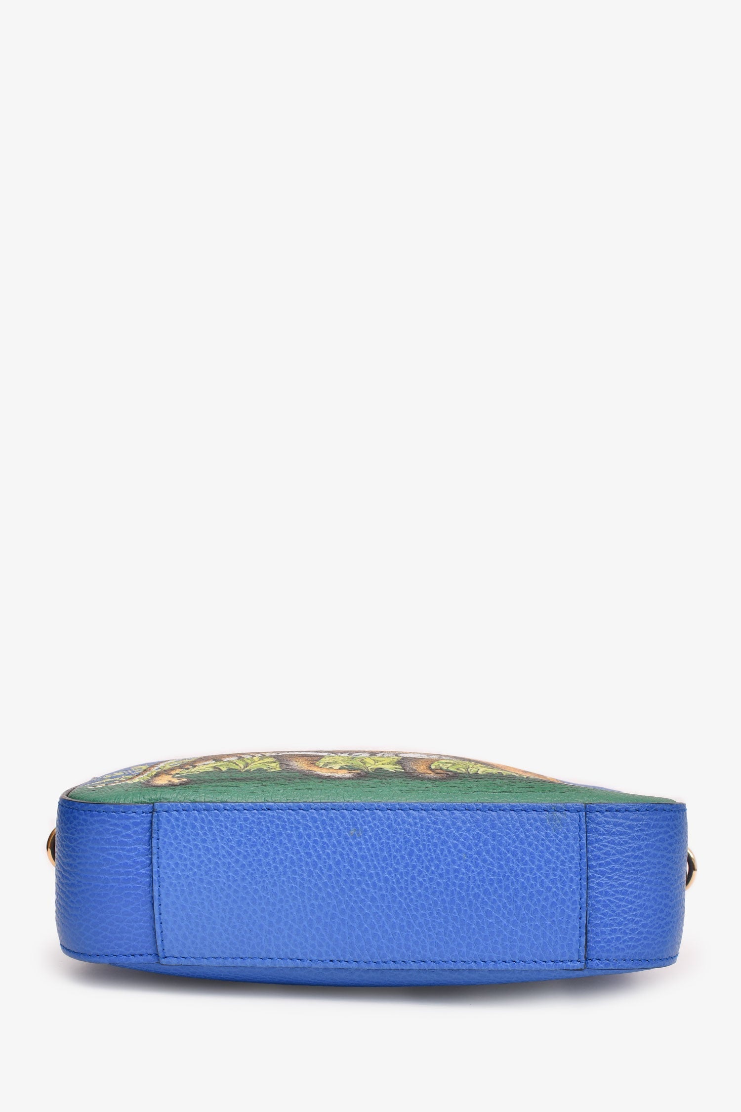 Gucci Blue Grained Leather Tiger Painted Web Strap Sylvie Crossbody