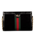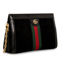 Crafted from the brand's textured black calf leather GG Supreme monogram canvas, Gucci presents their Ophidia cross-body bag. Accented with gold-tone hardware, brown leather trimming and Gucci's classic red and green fabric strip down the front, the Ophidia is an absolute must-have for any woman with a love for luxury and a soft spot for timepieces. Though the Ophidia isn't a vintage model, it is the perfect balance between old and new. A somewhat modernized version of a traditional Gucci bag, the Ophidia reminds us of a vintage piece that's been pushed forward into the contemporary world - and we're here for it. Suitable for any and every occasion, this bag is the ideal compliment to pretty much anything in your wardrobe. A sophisticated piece with elements of youth and playfulness, the Ophidia is a well-worthy addition to any woman's luxury handbag collection.