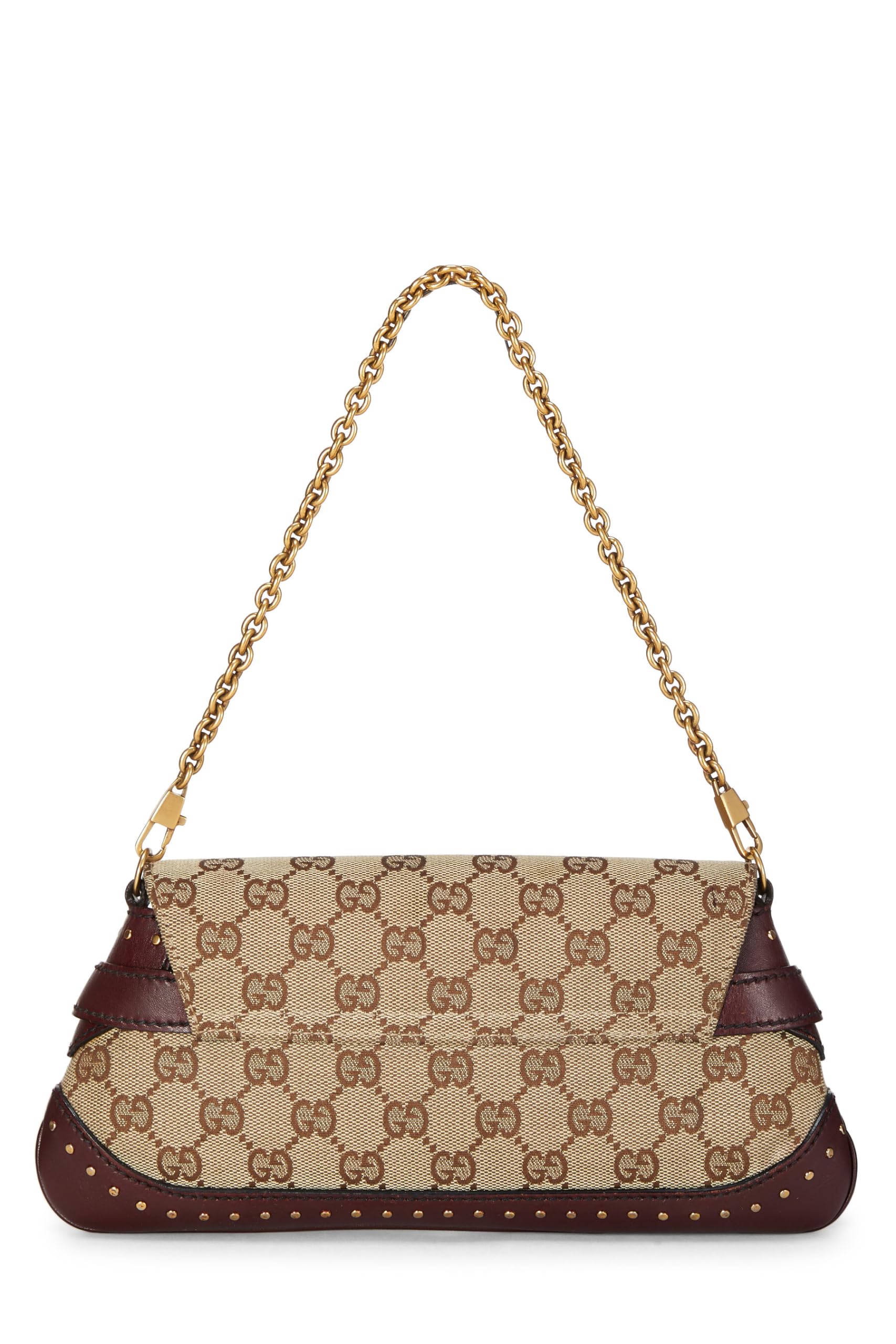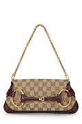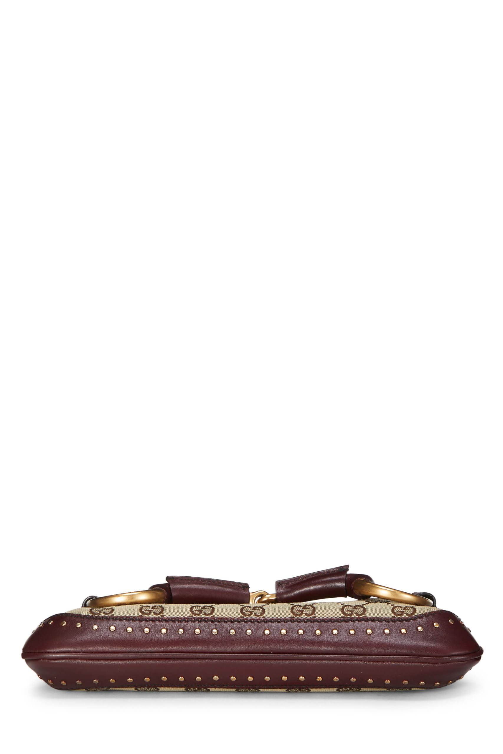Gucci, Burgundy Original GG Canvas Studded Horsebit Chain Clutch, Burgundy