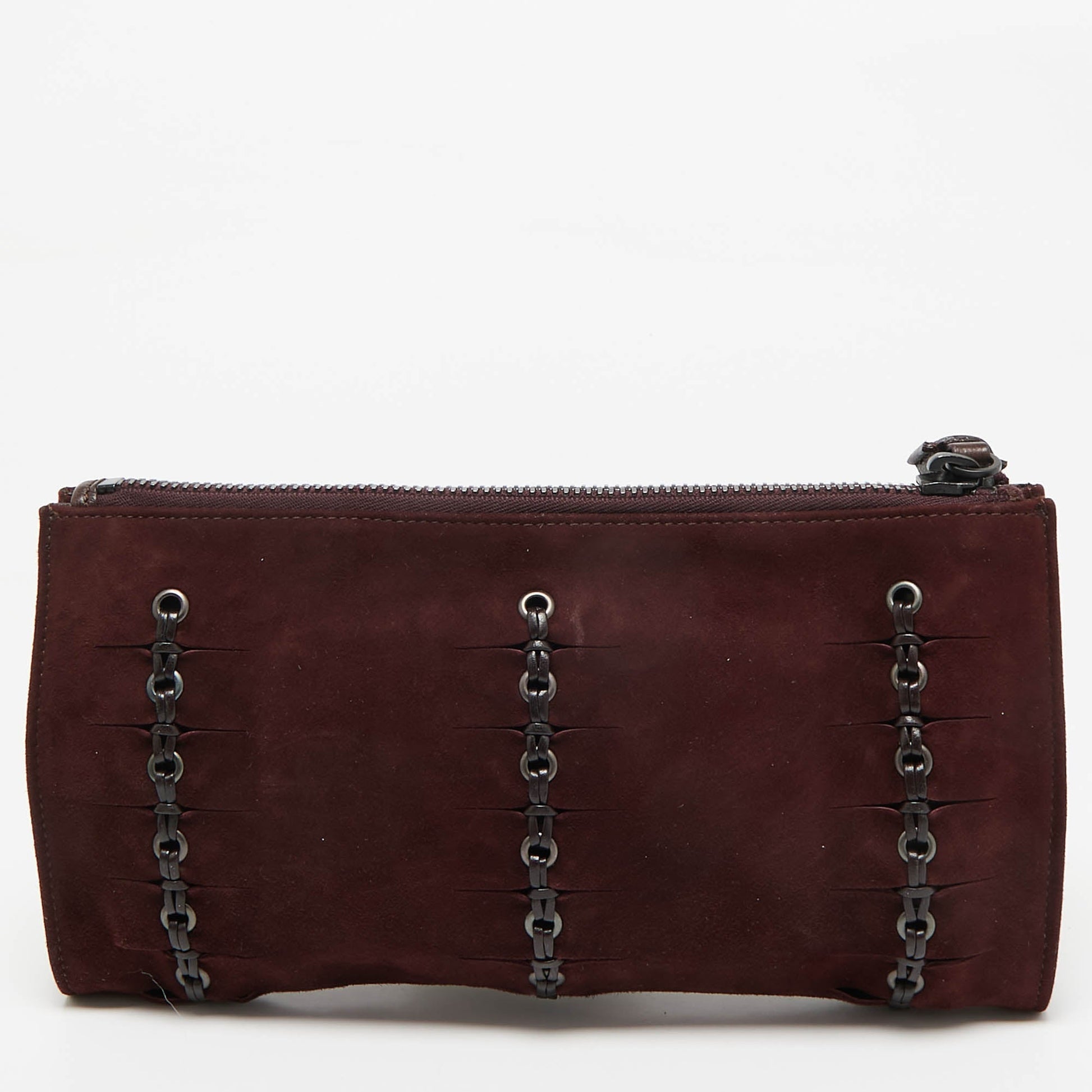 Gucci Burgundy Suede Eyelet Wristlet Clutch