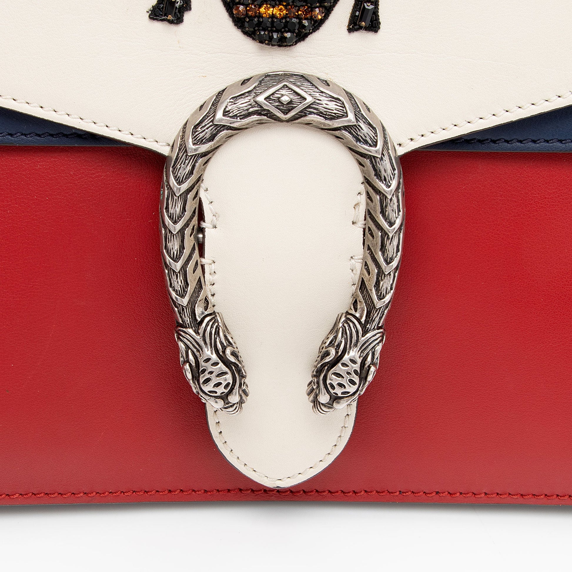 Gucci Calfskin Embroidered Dionysus Bee Medium Shoulder Bag