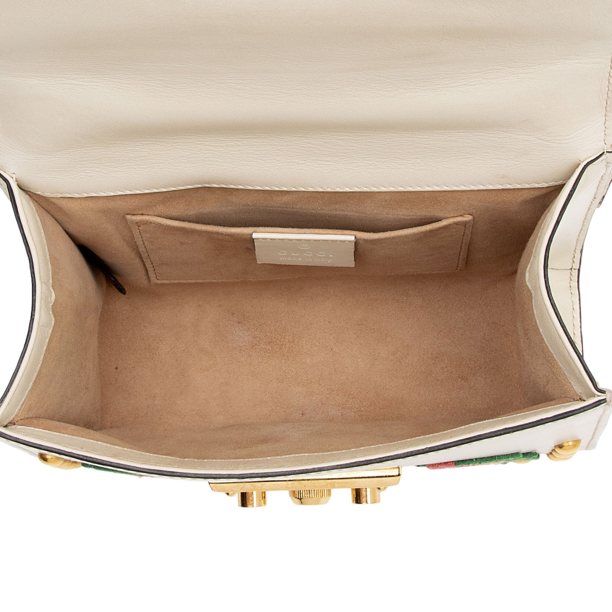 Gucci Calfskin Embroidered Padlock Small Shoulder Bag (SHF-IvAfyD)