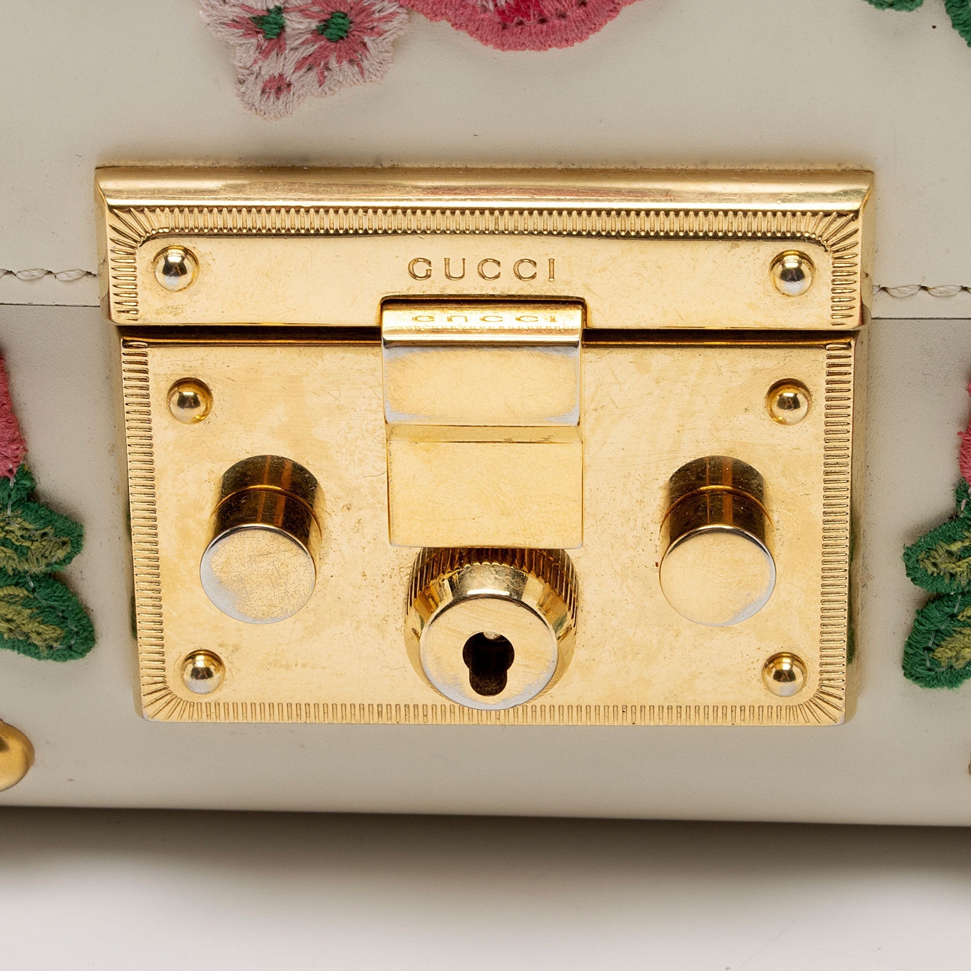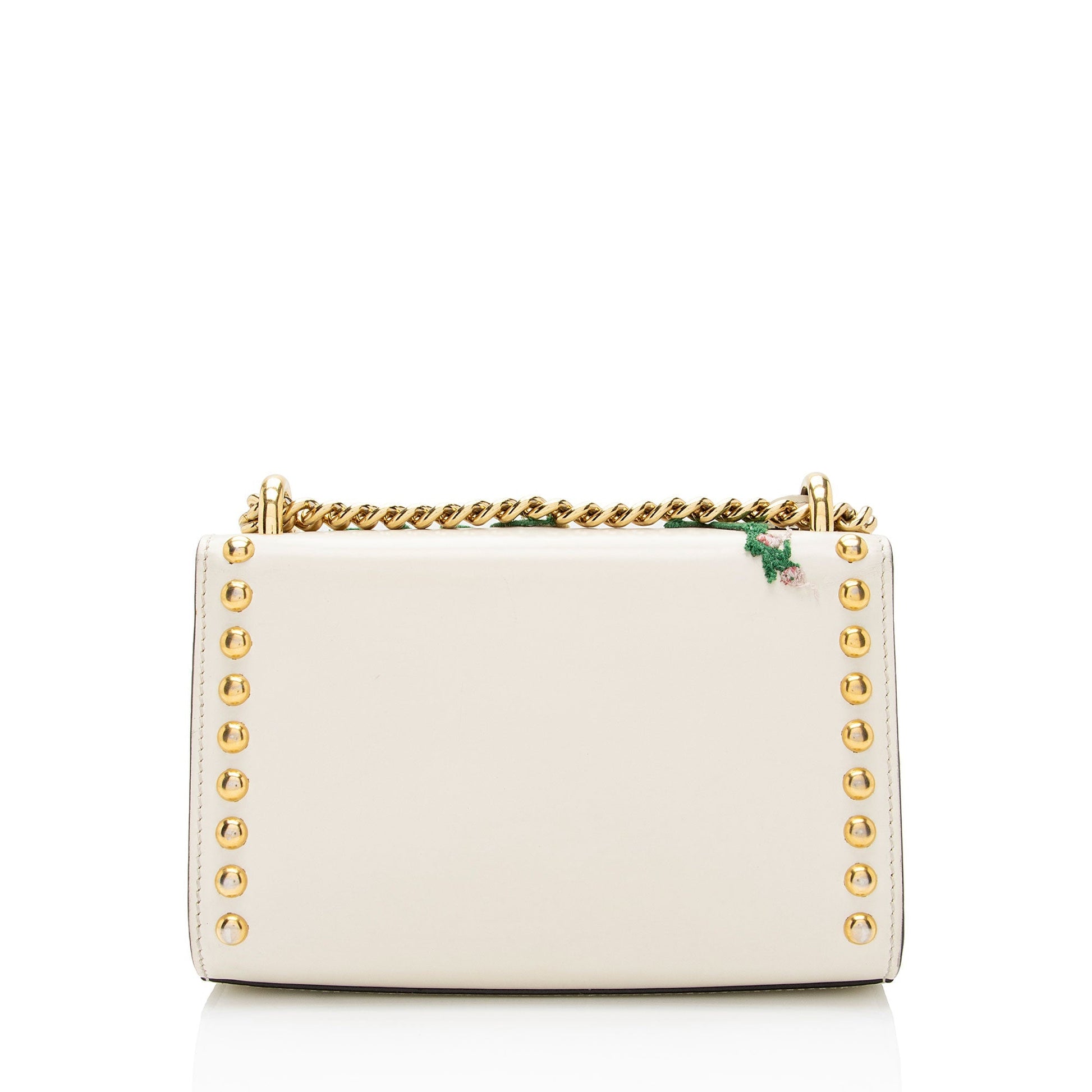 Gucci Calfskin Floral Studded Padlock Small Shoulder Bag (SHF-XfBq3s)