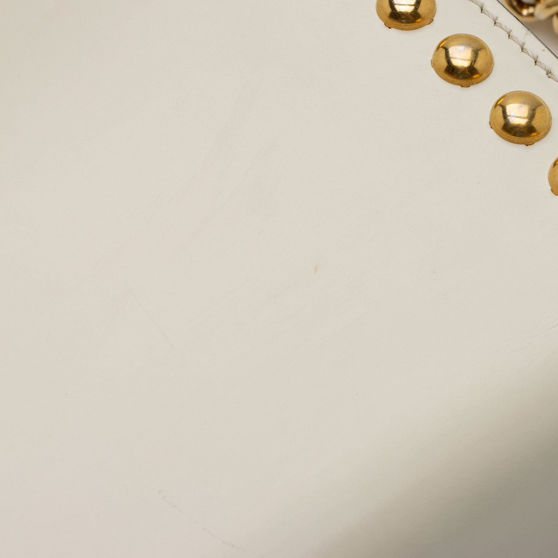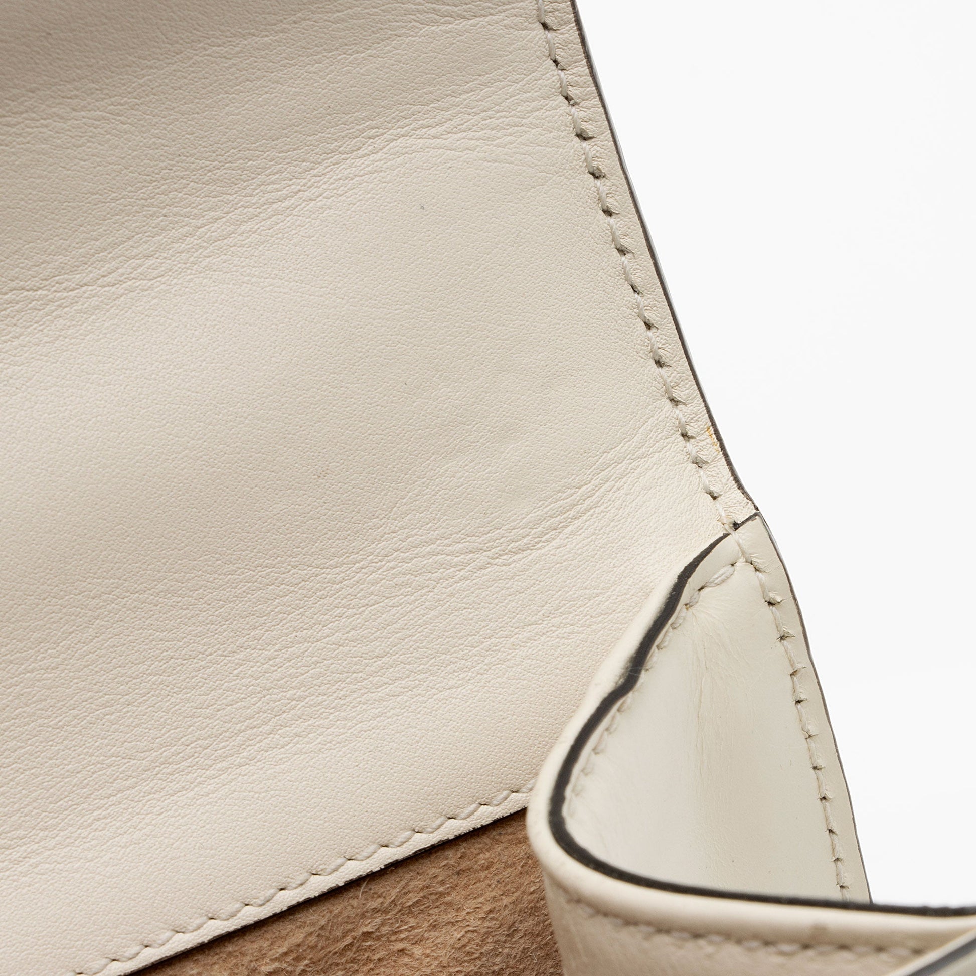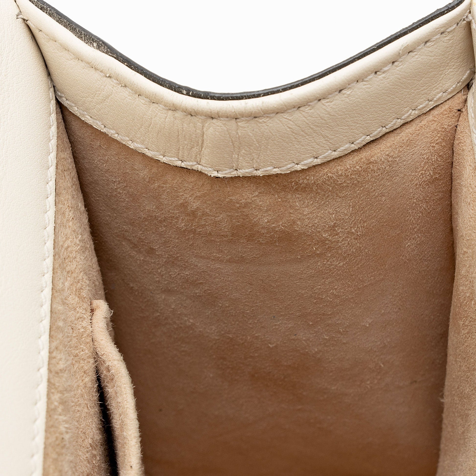 Condition Notes: Light marks and scuffs throughout exterior calfskin. Darkening and marks throughout exterior embroidery. Visible large mark to exterior base. Marks and cracking near shoulder strap bases. Moderate surface scratches and tarnishing to hardware. Marks and light darkening throughout interior.