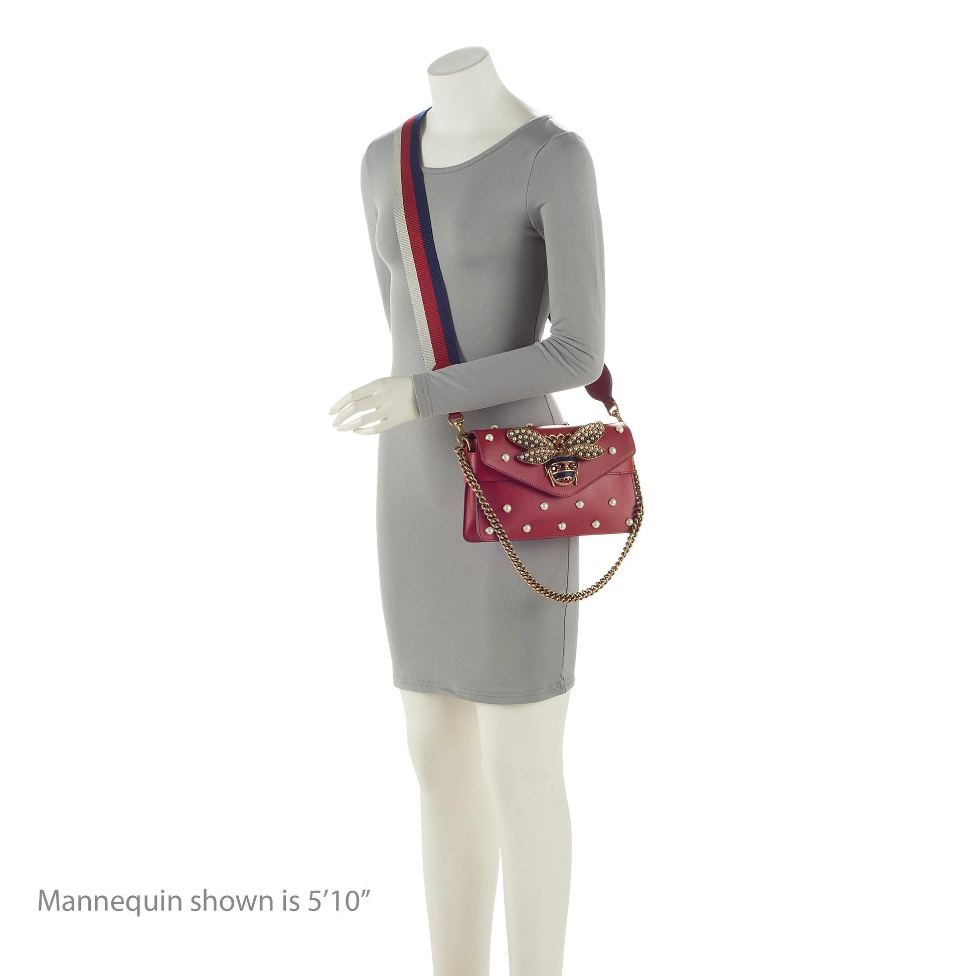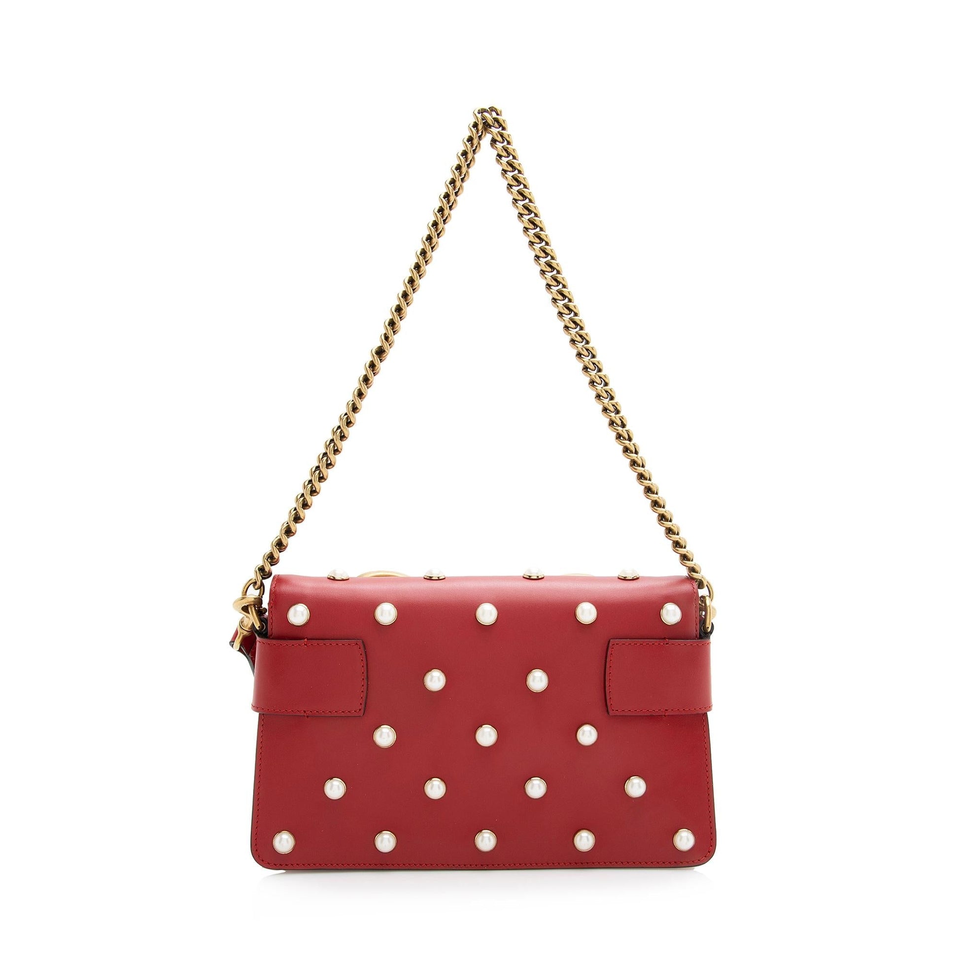 Gucci Calfskin Pearl Bee Broadway Mini Shoulder Bag (SHF-22405)