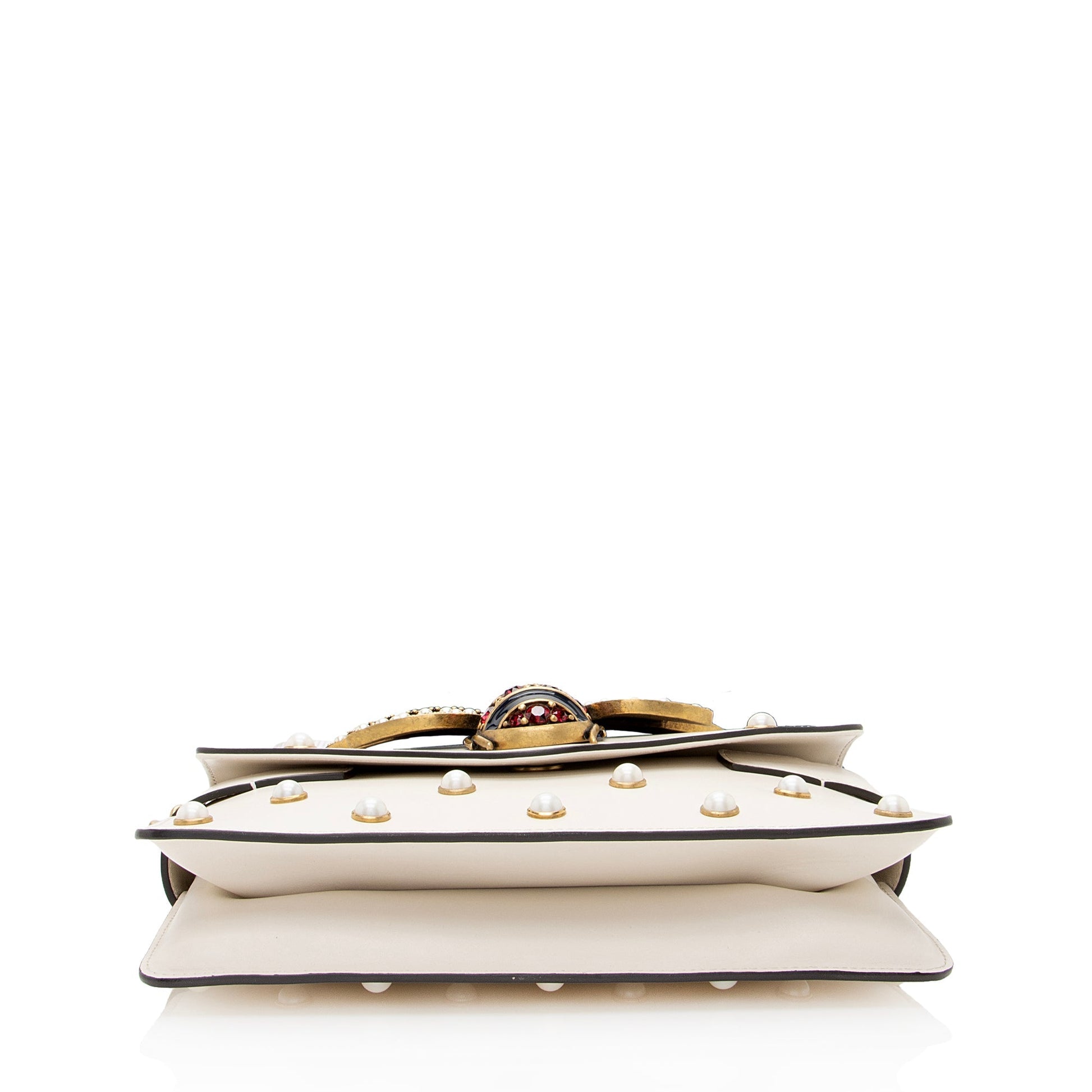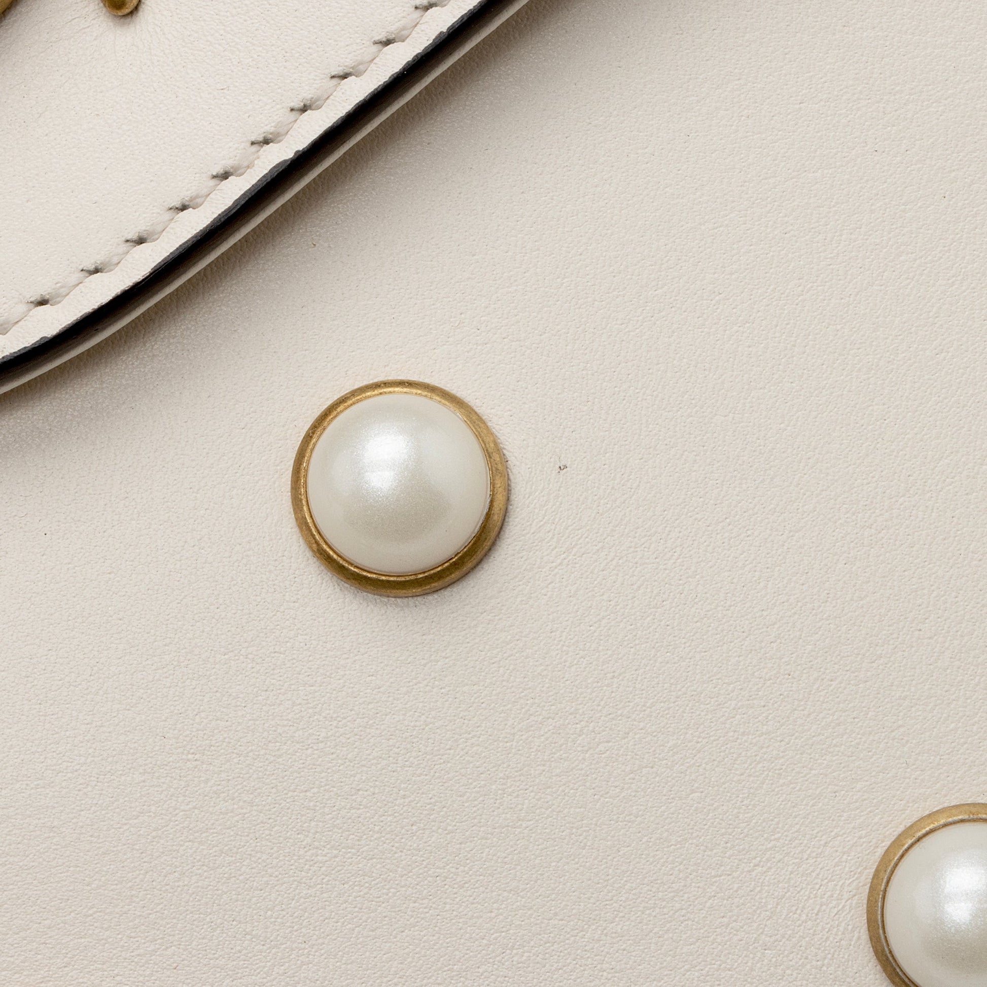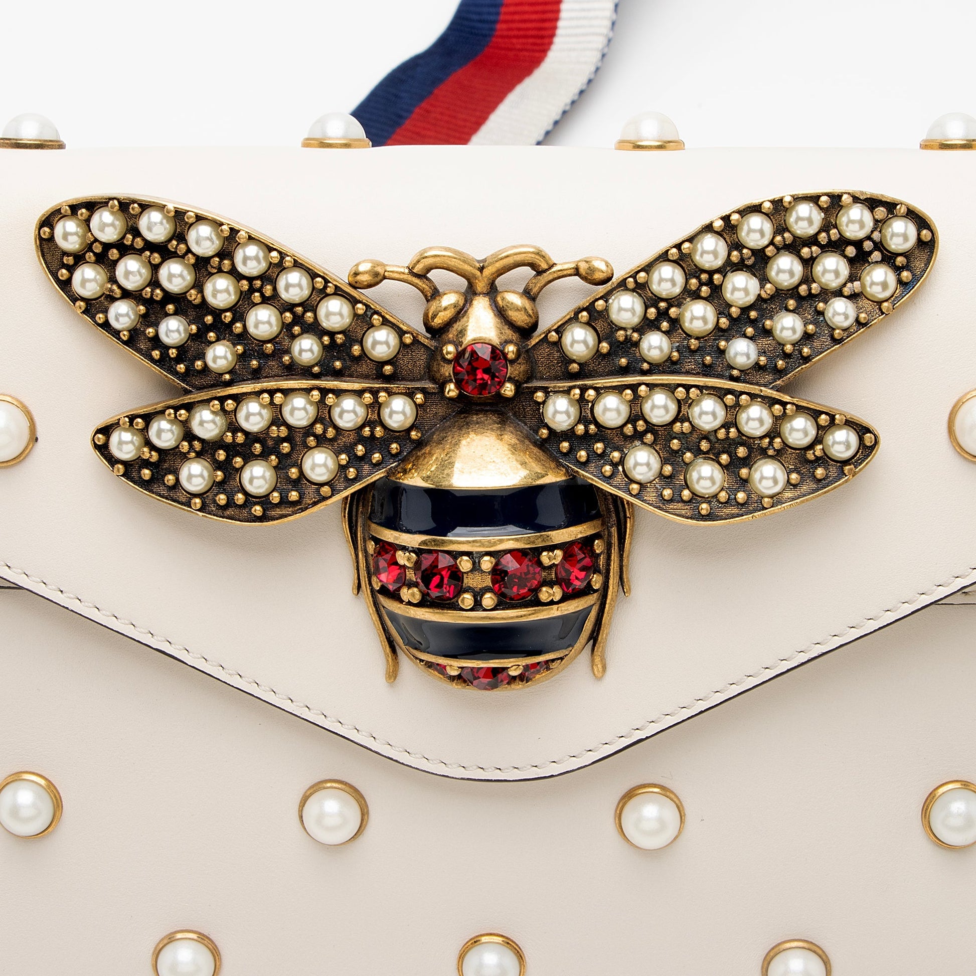 Gucci Calfskin Pearl Bee Broadway Mini Shoulder Bag (SHF-22409)
