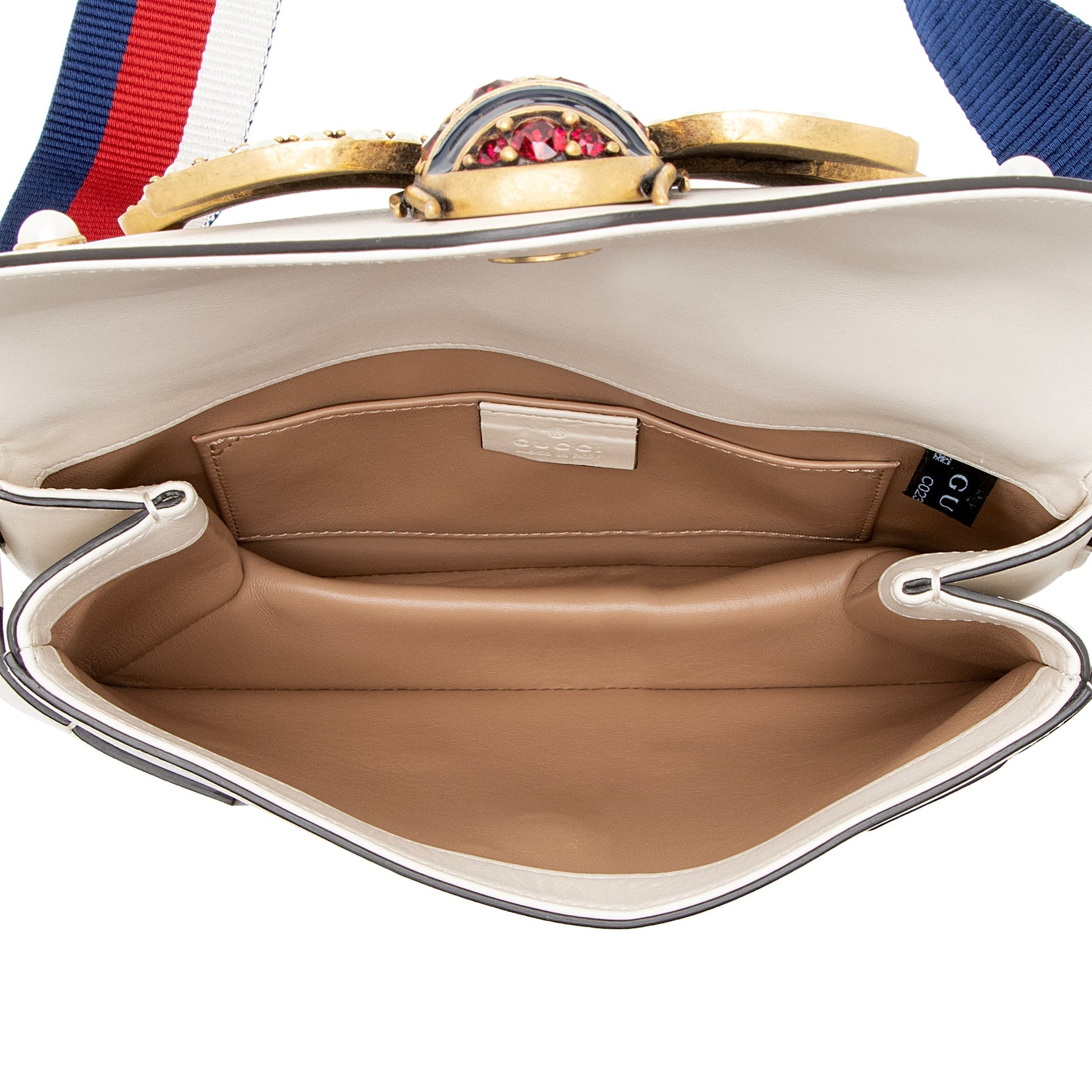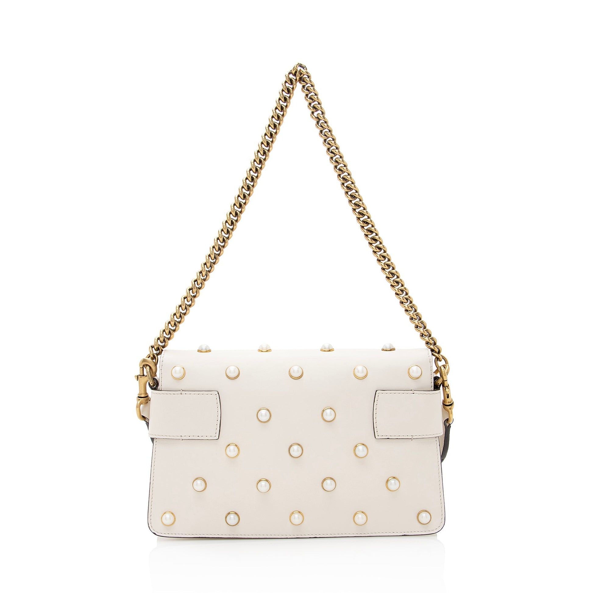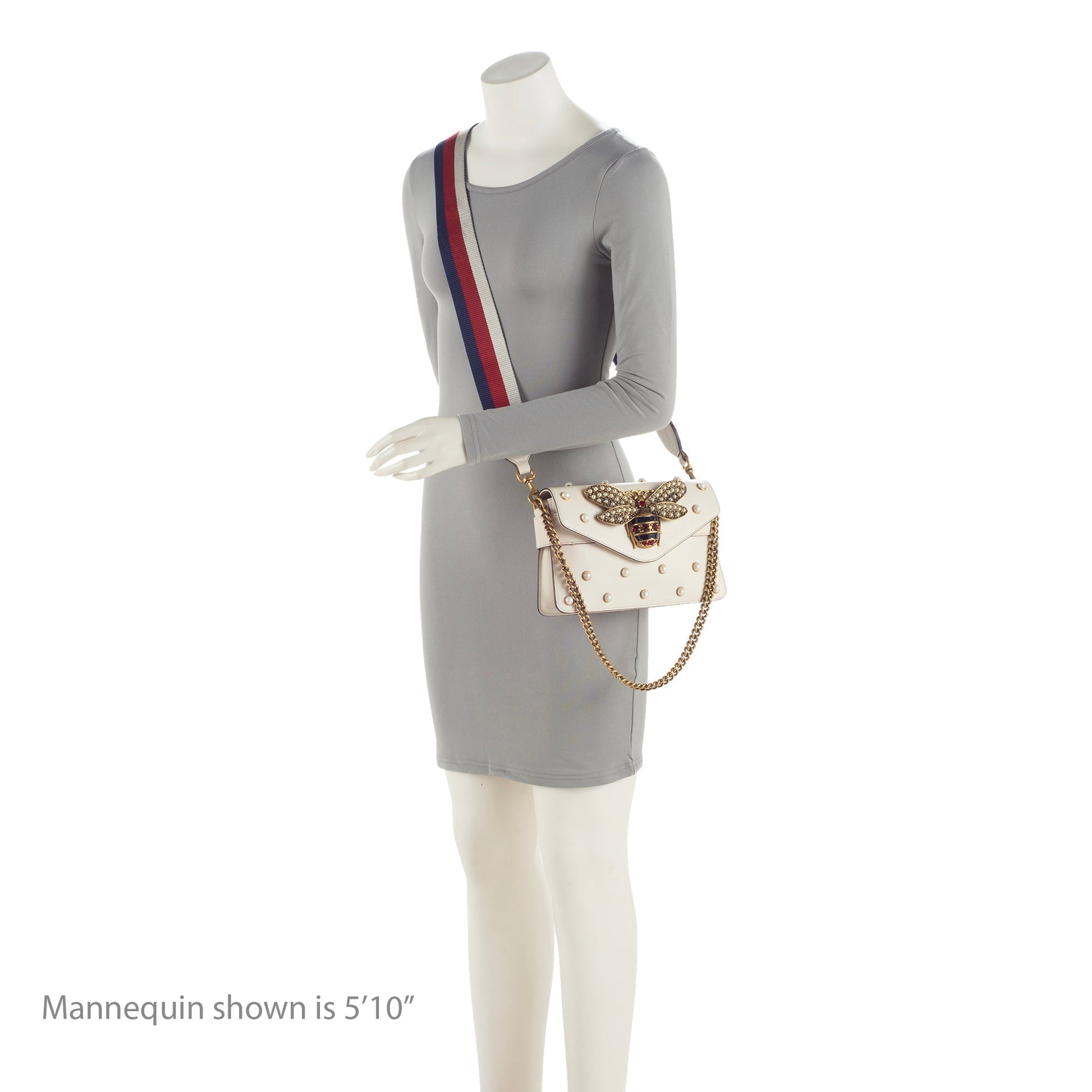 Gucci Calfskin Pearl Bee Broadway Mini Shoulder Bag (SHF-22409)