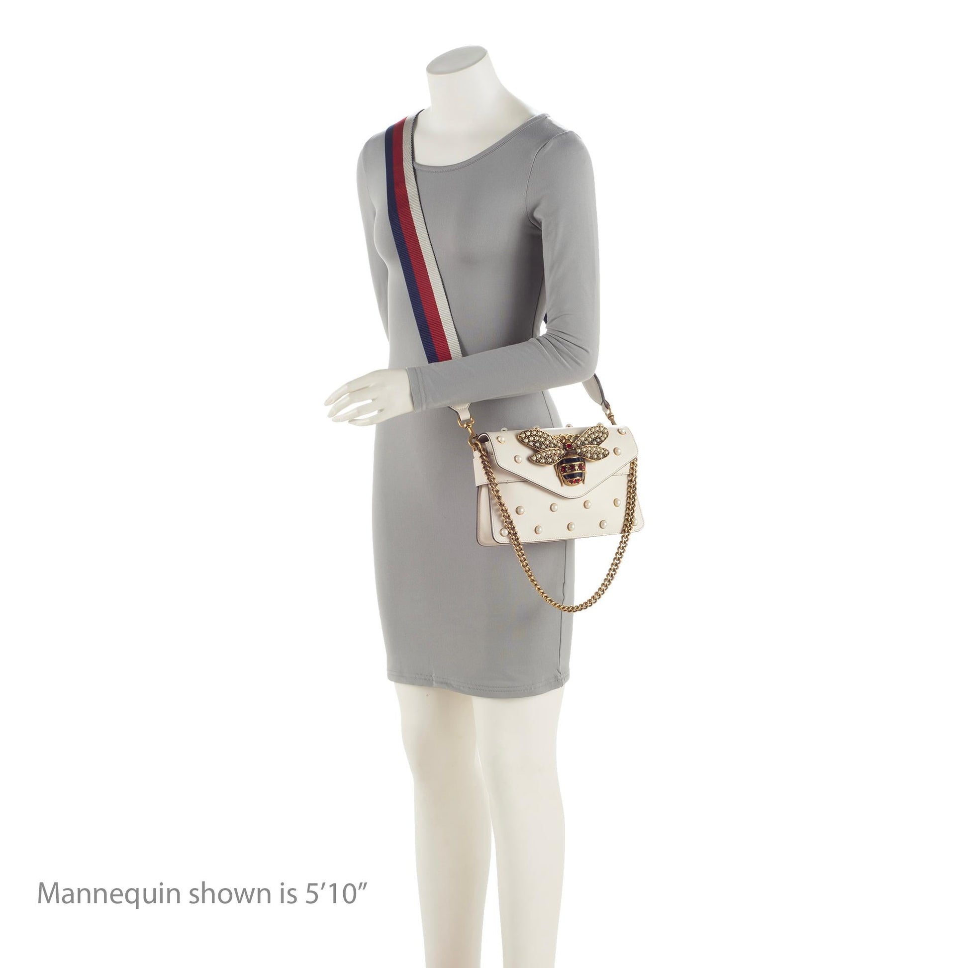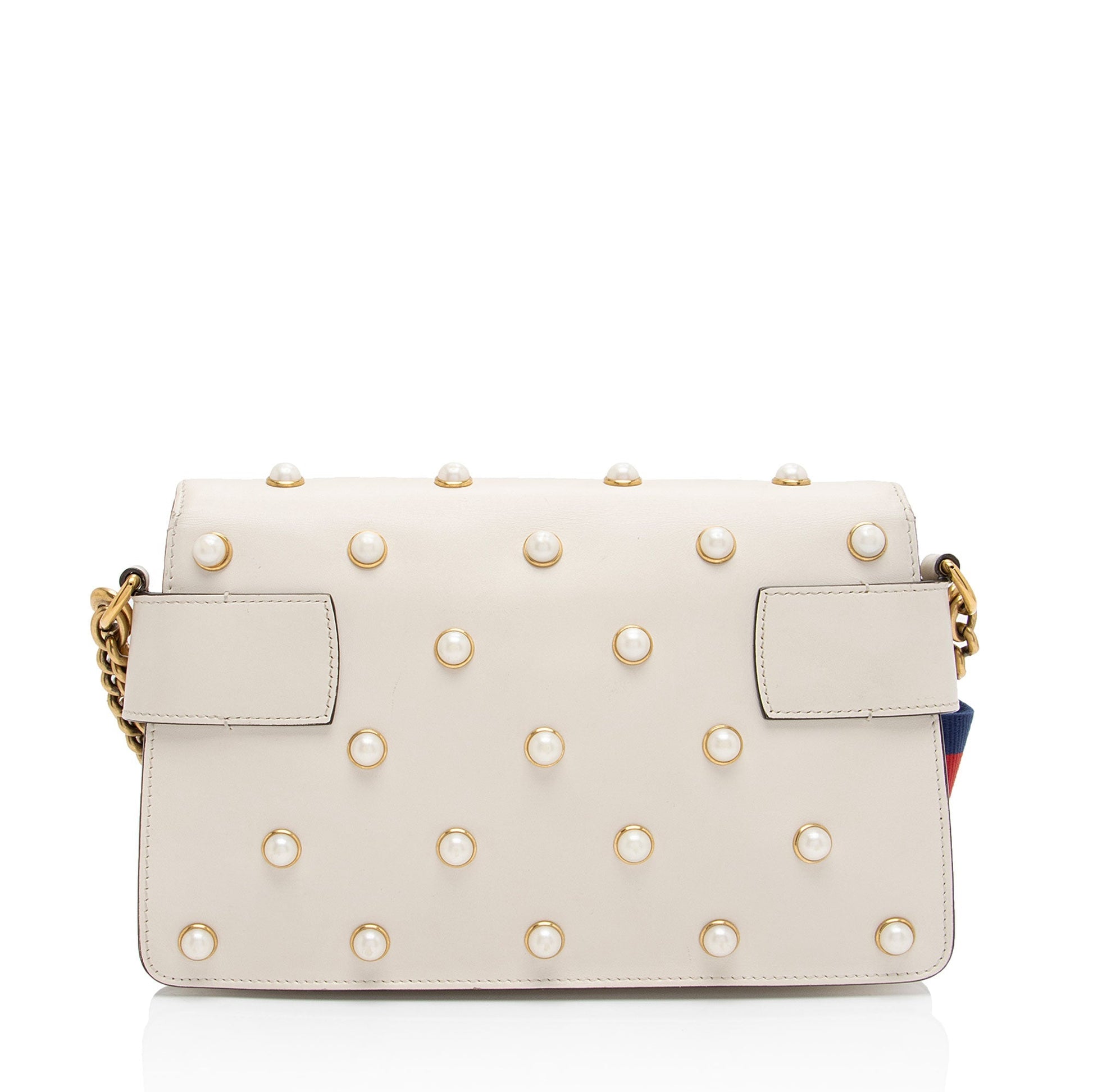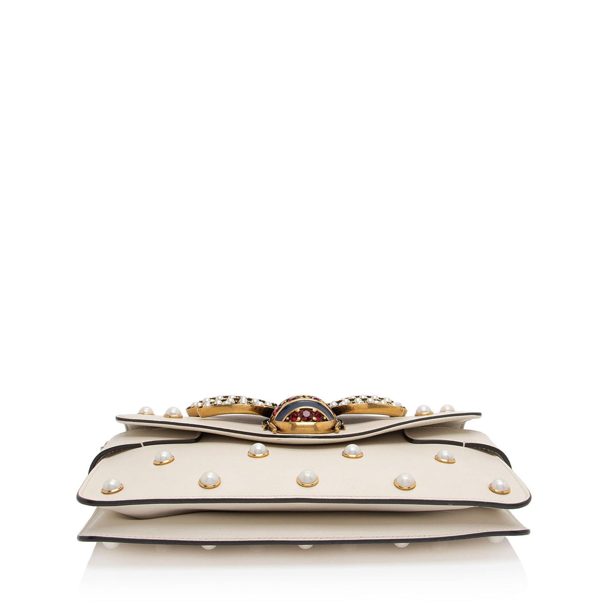 Gucci Calfskin Pearl Bee Broadway Mini Shoulder Bag (SHF-tRht4u)