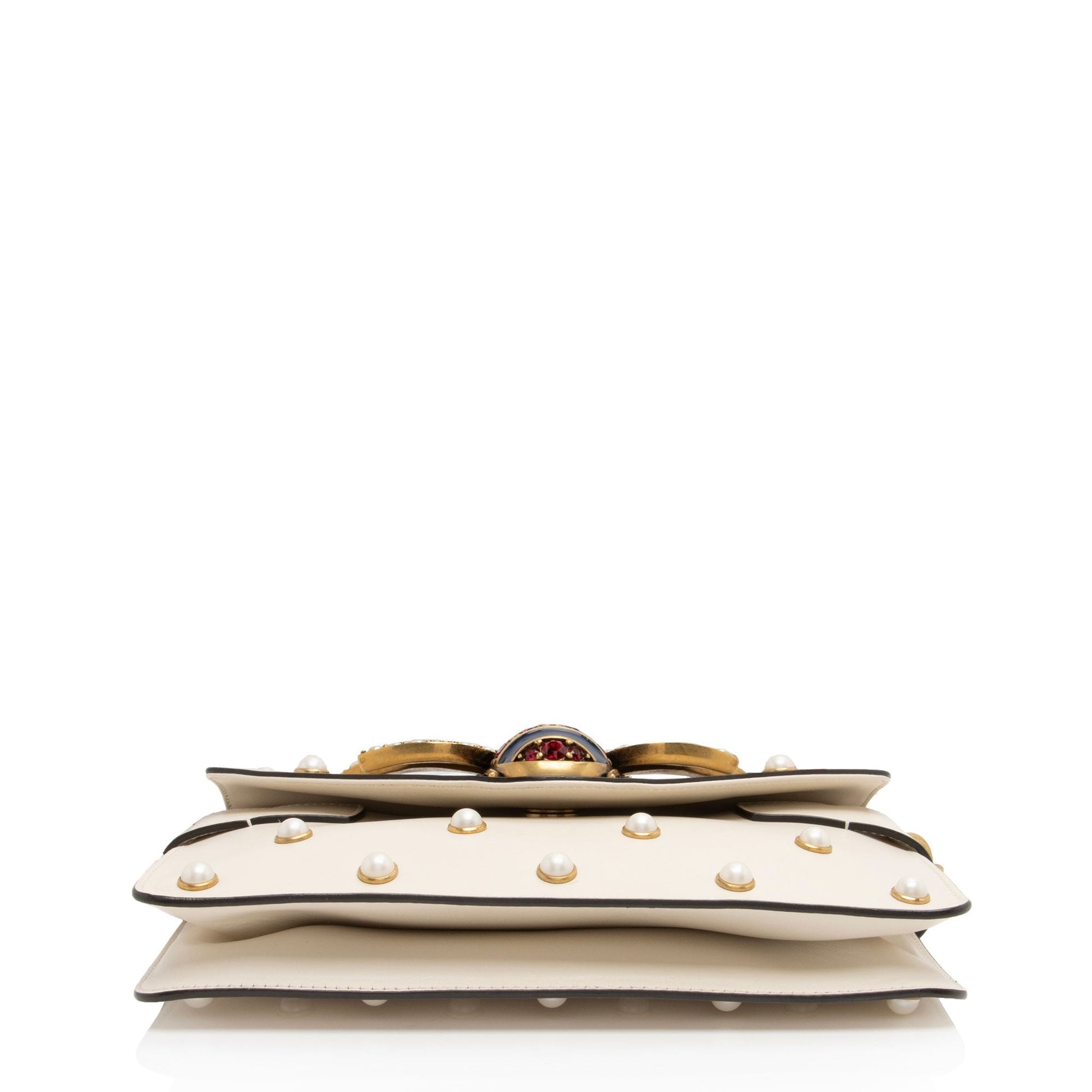Gucci Calfskin Pearl Bee Broadway Mini Shoulder Bag (SHF-vh1WnC)