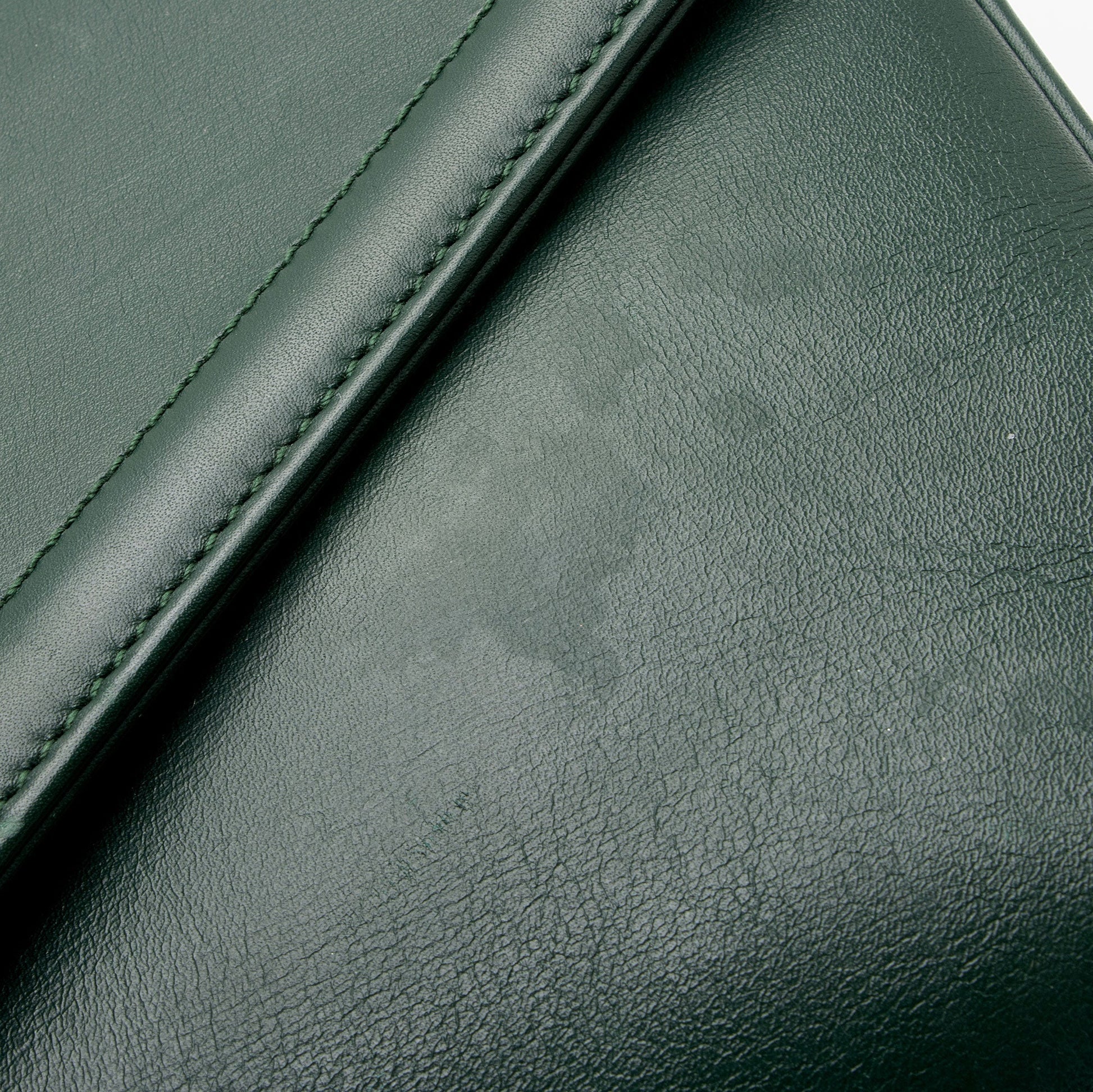 Condition Notes: Visible scuffs throughout exterior. Scuffs to exterior bottom corners. Visible surface scratches to hardware. Scuffs and wear throughout interior flap. Marks and light discoloration throughout interior.