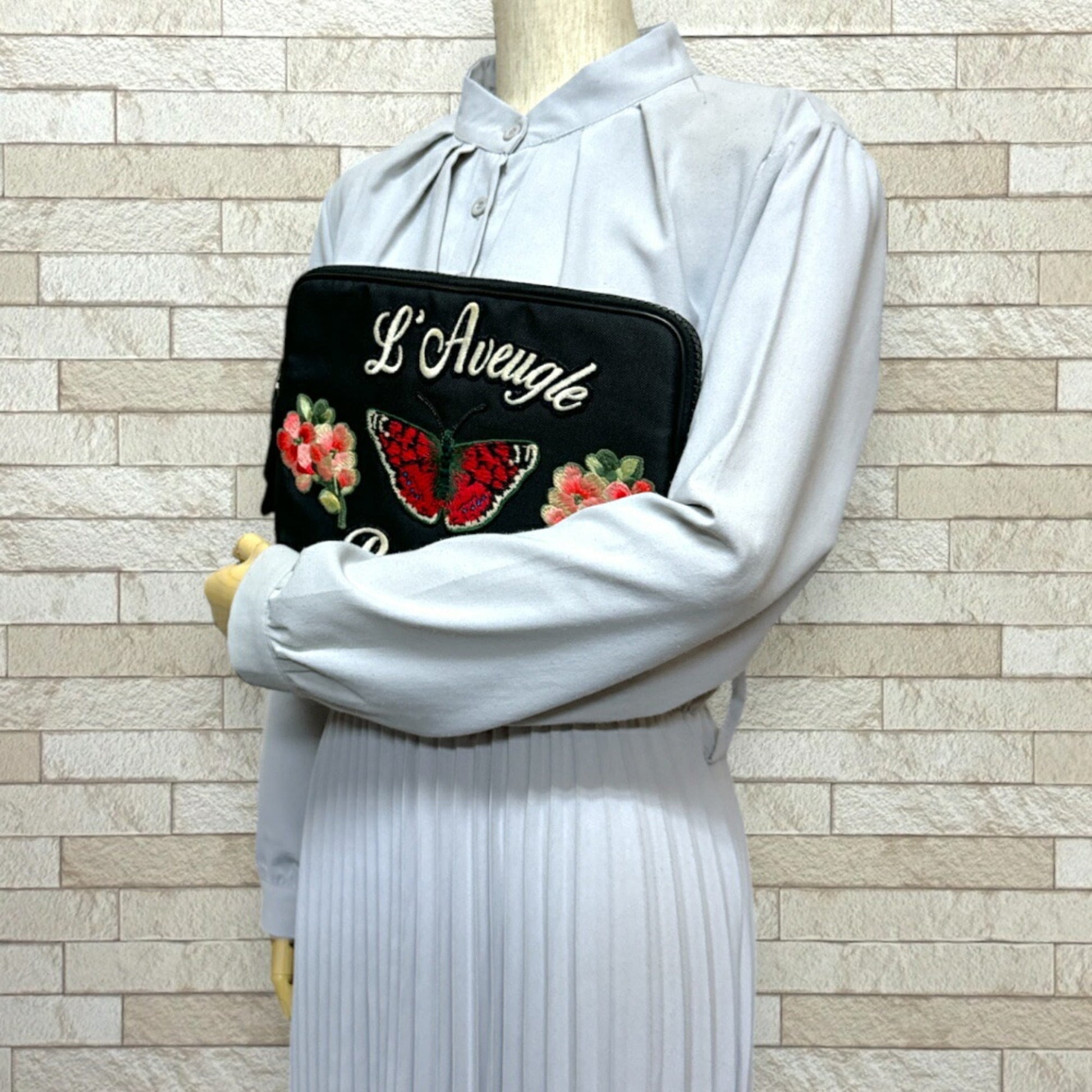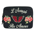 Brand - Gucci, Color - Black, Material - Canvas, Dimensions - 19cm x 26cm x 2cm / 7.48'' x 10.23'' x 0.78'', Condition - Rank B. Rank B New - Traces of usage, damages / dirt can be seen but it is still in acceptable condition for continued usage. Before purchasing, please refer to the images for the exact condition of the item. Before purchasing, please refer to the images of the accessories included with the item. Damage Ranking - Moderate Size - One Size