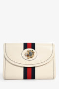 Gucci Cream Leather Web Mini Rajah Clutch with Chain