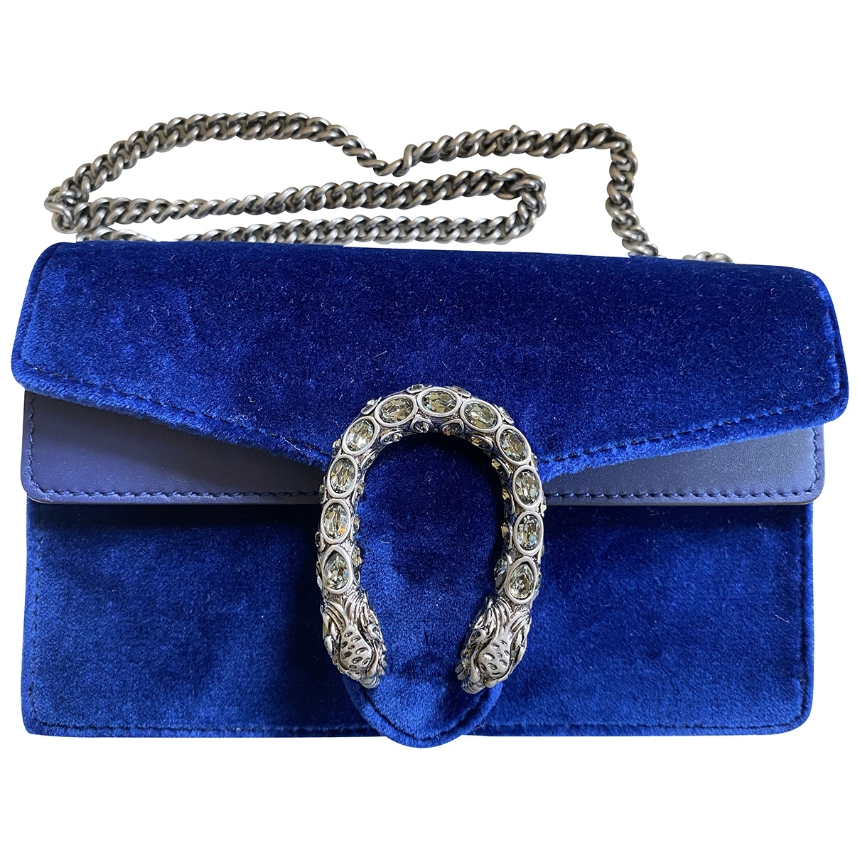 Gucci Dionysus Blue Velvet clutch bag for women.