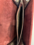 - Bordeaux suede interior with 2 separate main compartments and a middle zip-compartment