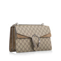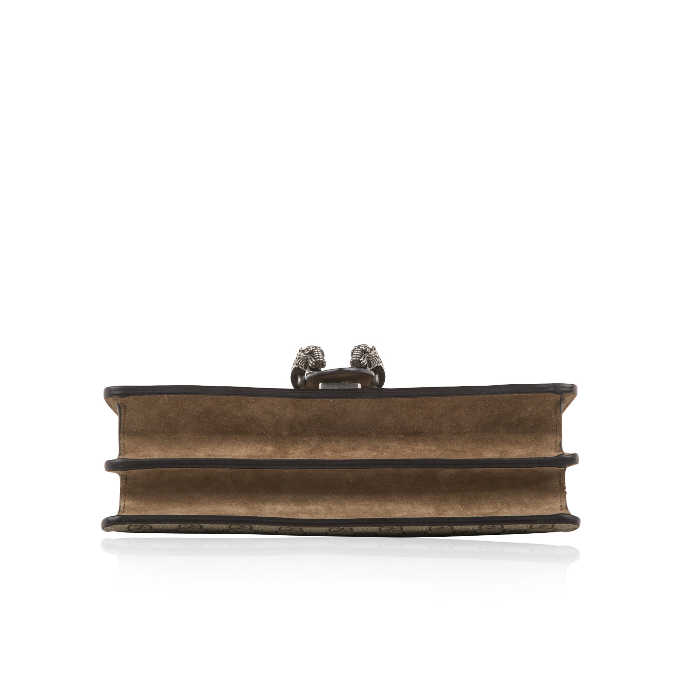 Inspired by the Greek God of wine and celebration, the Gucci Dionysus is an absolute must have for any woman with a love for luxury and a special spot for monograms. An instant classic, the Dionysus has become one of the most coveted bags of the past five years. The perfect companion for any and every occasion, you can easily pair your Dionysus with anything in your wardrobe. Decorated with the GG Supreme print and the signature tiger clasp, this shoulder bag can easily fit all your every day essentials comfortably inside. Sleek, stylish and sophisticated, this stunning bag is the perfect balance between feminine and edgy. A classic piece you'll have for life, the Dionysus is one you'll never fall out of love with.