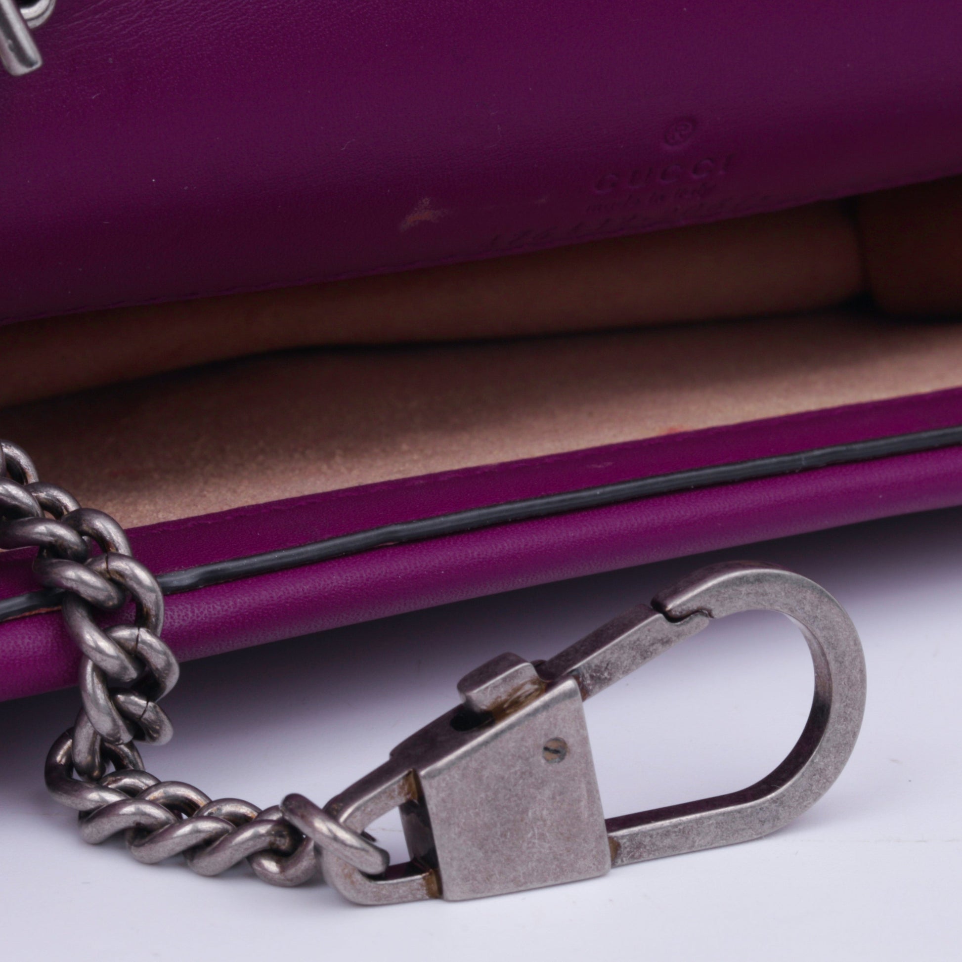 - Gucci embossed leather logo tag