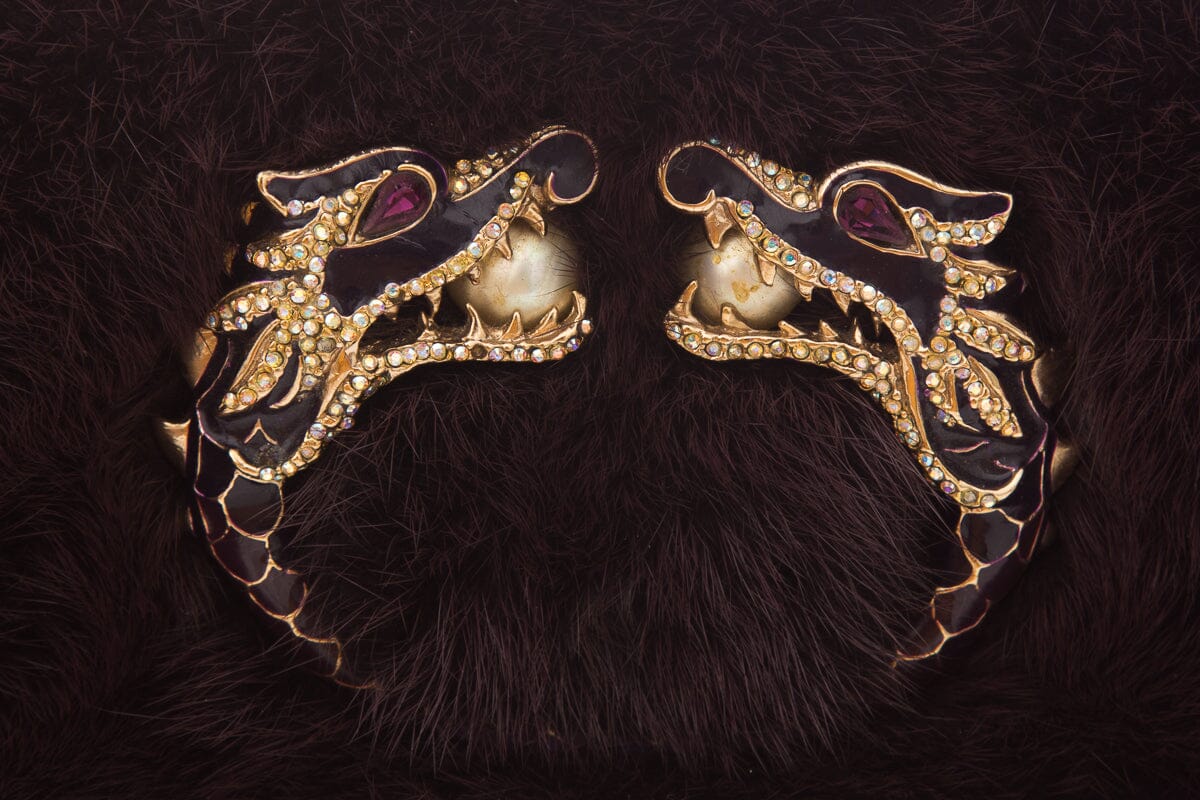 Gucci F/W 2004 By Tom Ford Burgundy Mink & Crystal Wolf Head Clutch
