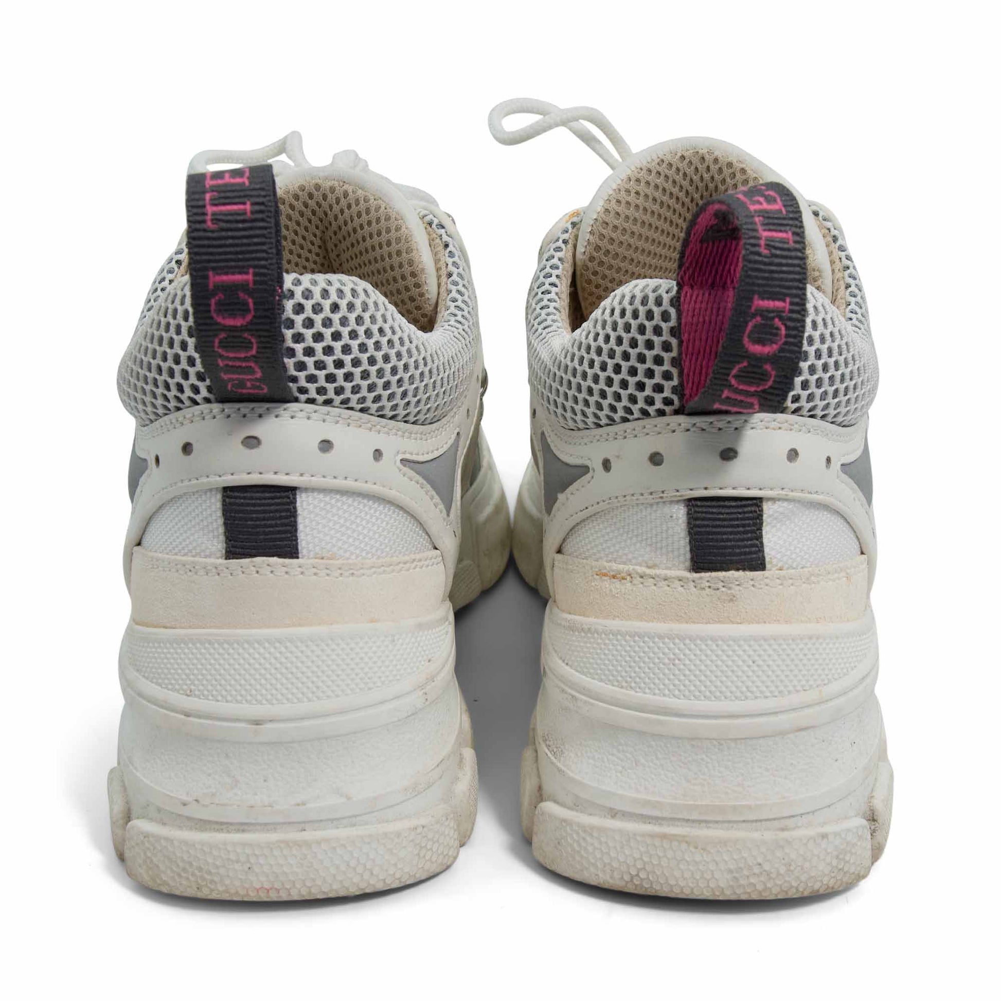 Gucci 'Flashtrek' chunky sneakers in white leather and mesh with 3M relfective details and silver hardware.