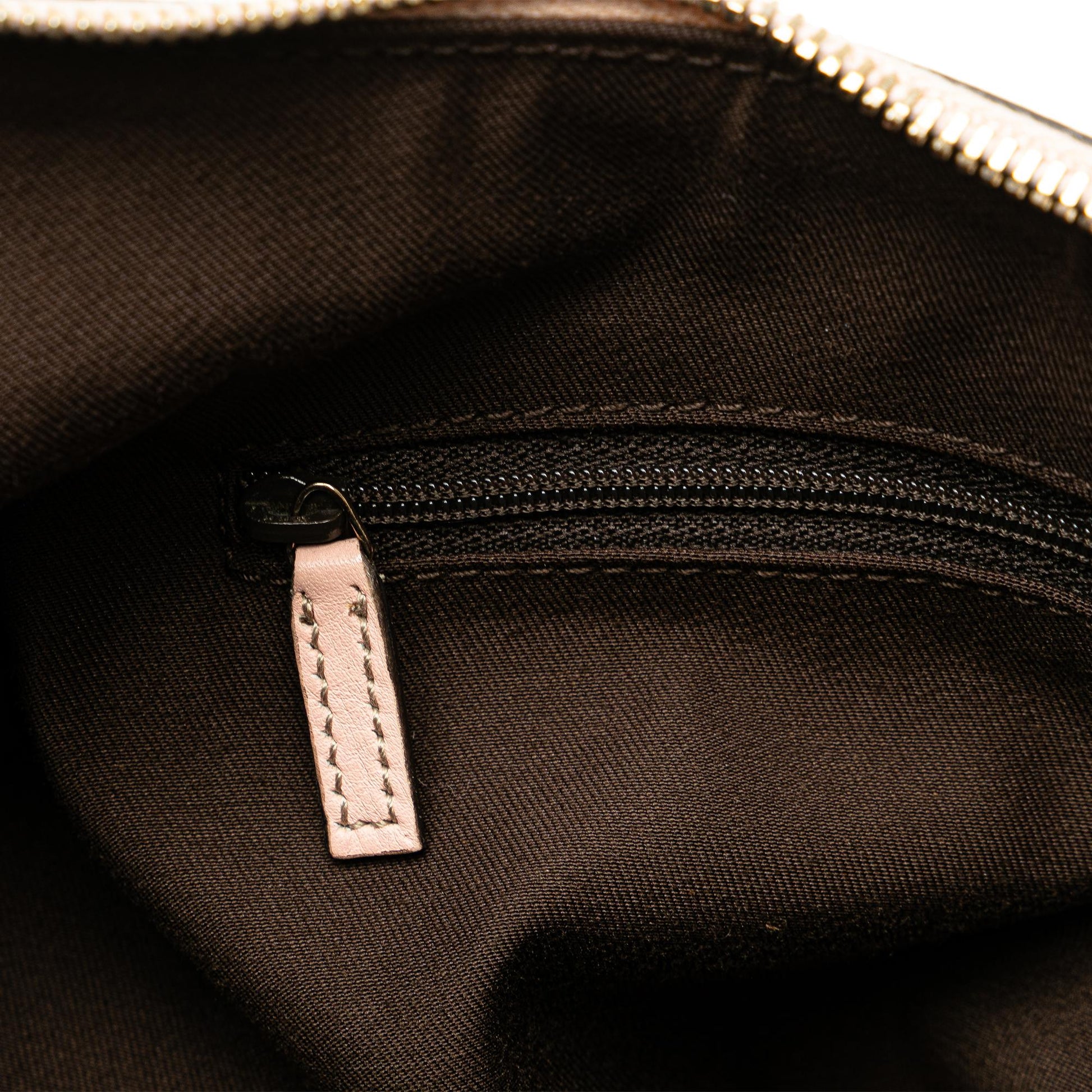 Condition Notes: Exterior Bottom stained with Other. Exterior Handle stained with Other. Exterior Corners Worn. Exterior Top stained with Other. Embellishment Scratched. Practical Attachment Scratched. Zipper Scratched.