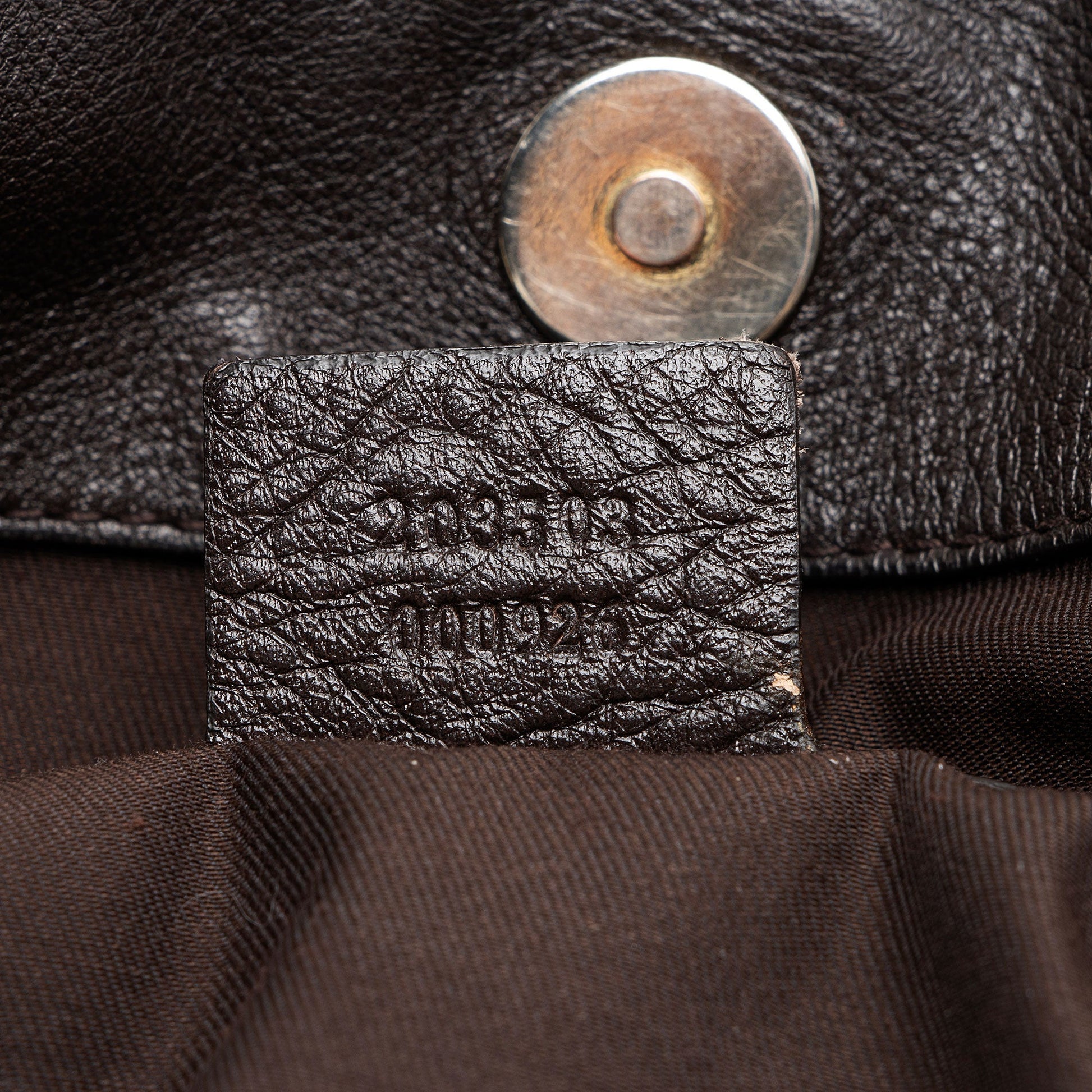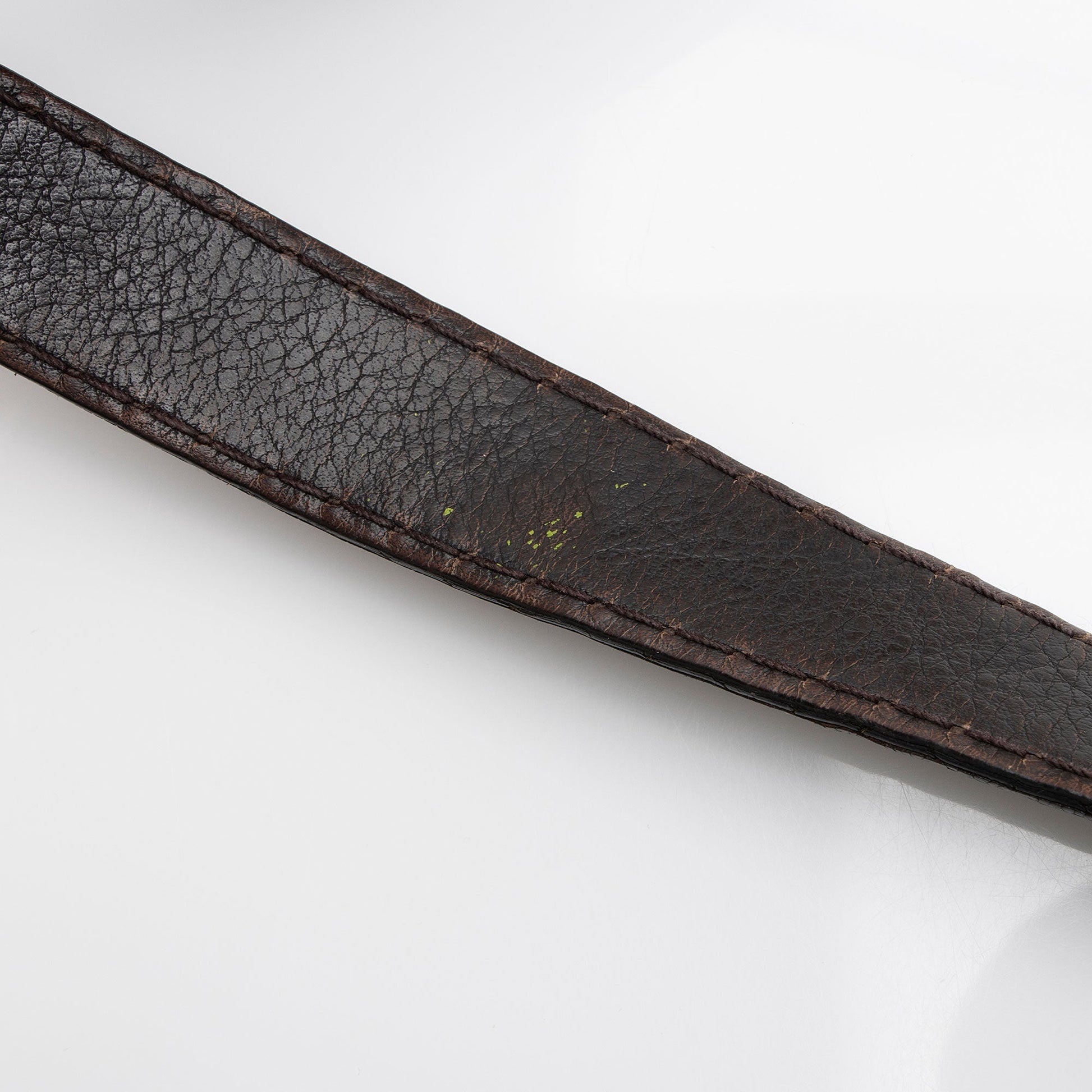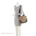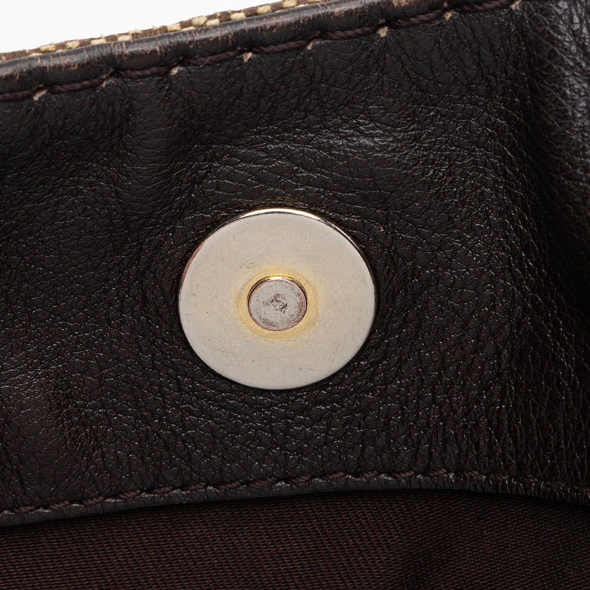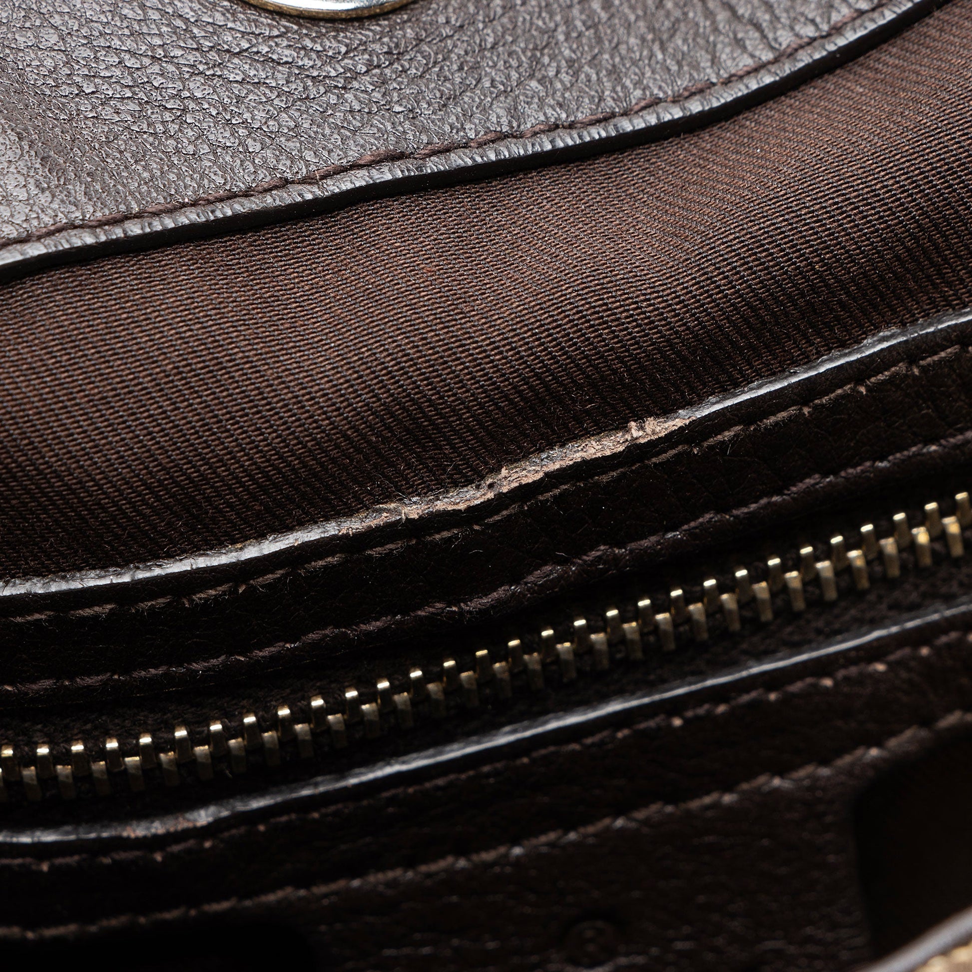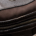 Condition Notes: Moderate creasing and scuffs throughout exterior leather trim and shoulder strap. Visible cracking and wear throughout shoulder strap casing. Light marks throughout exterior canvas. Heavy surface scratches and tarnishing to hardware. Marks and wear throughout interior.