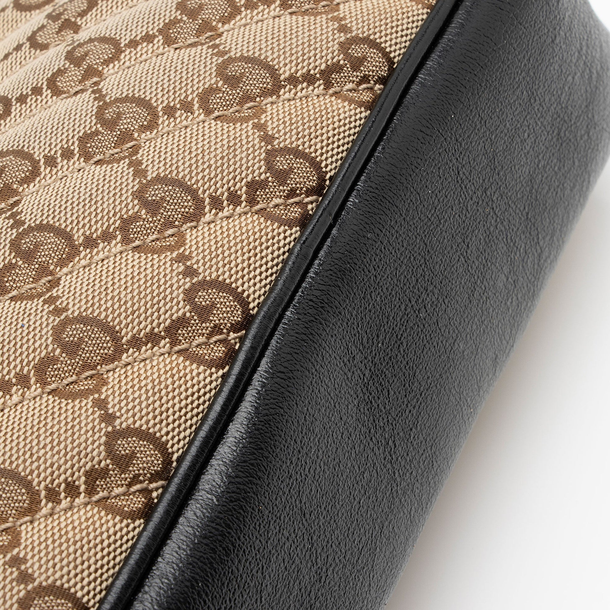 Condition Notes: Light scuffs to exterior bottom corners. Minor creasing throughout exterior side leather. Light marks and darkening throughout exterior canvas. Surface scratches to hardware. Marks and light darkening throughout interior.