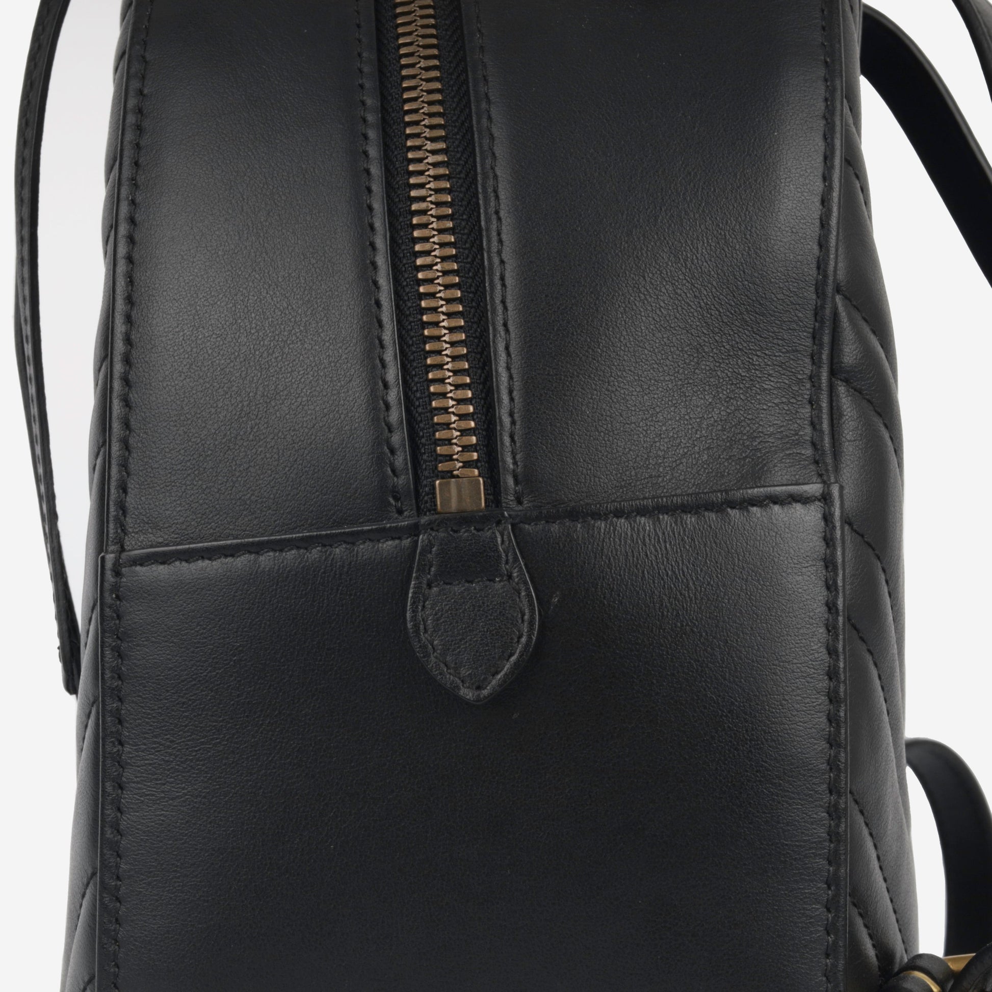 The Gucci Marmont Marmont backpack is a perfect bag to use day or night. The unique logo plaque has been revived from their archives of the 70’s era for the brand, and the chevron stitching brings the bag back to modern day and adds a little bit of interest to the eye.