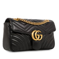 One of the most acclaimed and beloved handbags of the last five years, Gucci presents their infamous Mamont bag. Designed by Alessandro Michele, the Marmont collection was an instant success the moment it hit the shelves. Seen on the arm of every influencer imaginable, the Marmont is an absolute must-have for any young woman with a love for luxury and a soft spot for Gucci. A classic bag from the brand, the Marmont is the perfect bag to accompany you wherever you go at whatever hour. From brunch, to lunch, to dinner, to cocktails and wherever your night takes you after that, the Gucci Marmont is the ideal companion to have by your side. A timeless accessory that will compliment anything you have in your wardrobe, this stunning bag is a necessary addition to any luxury handbag collection.