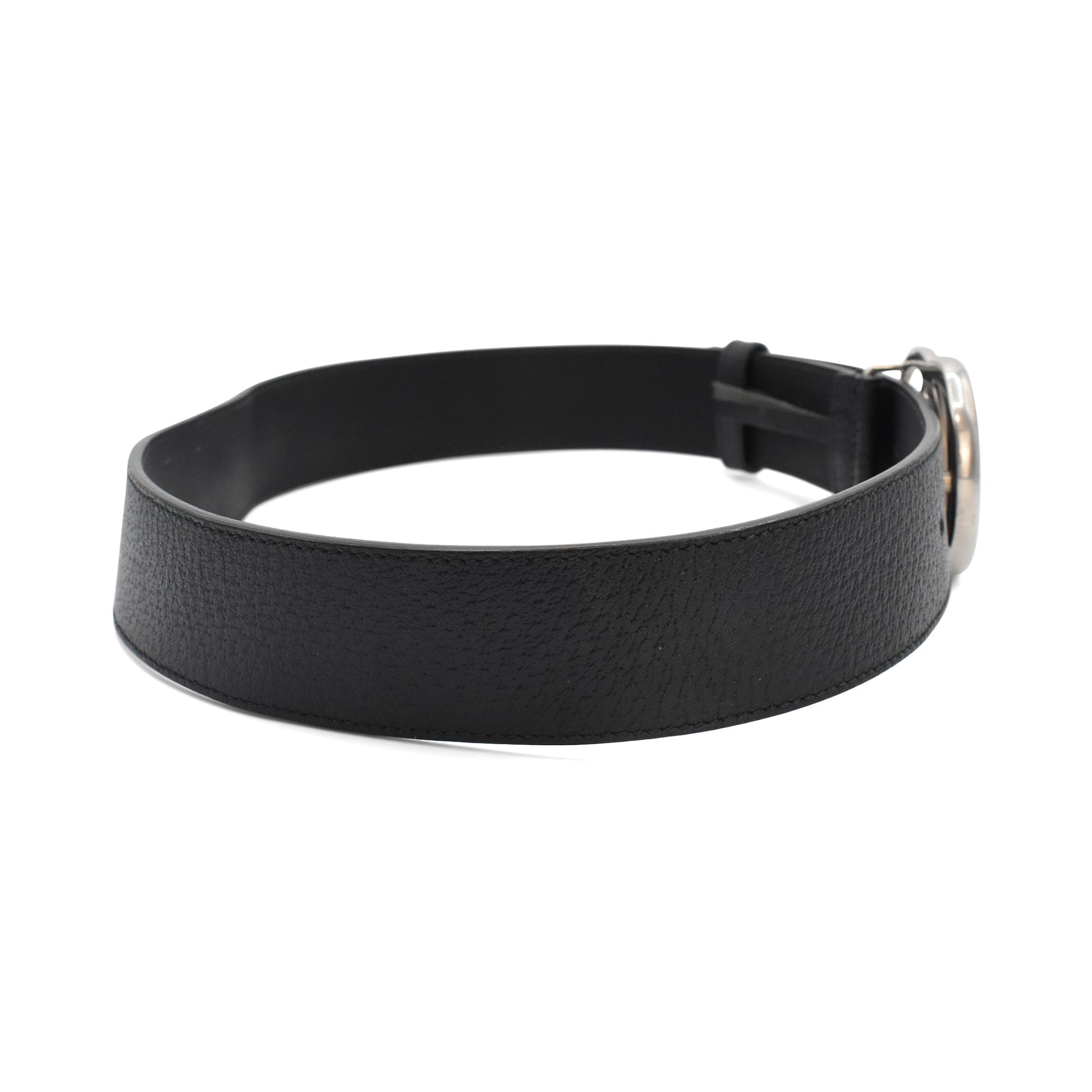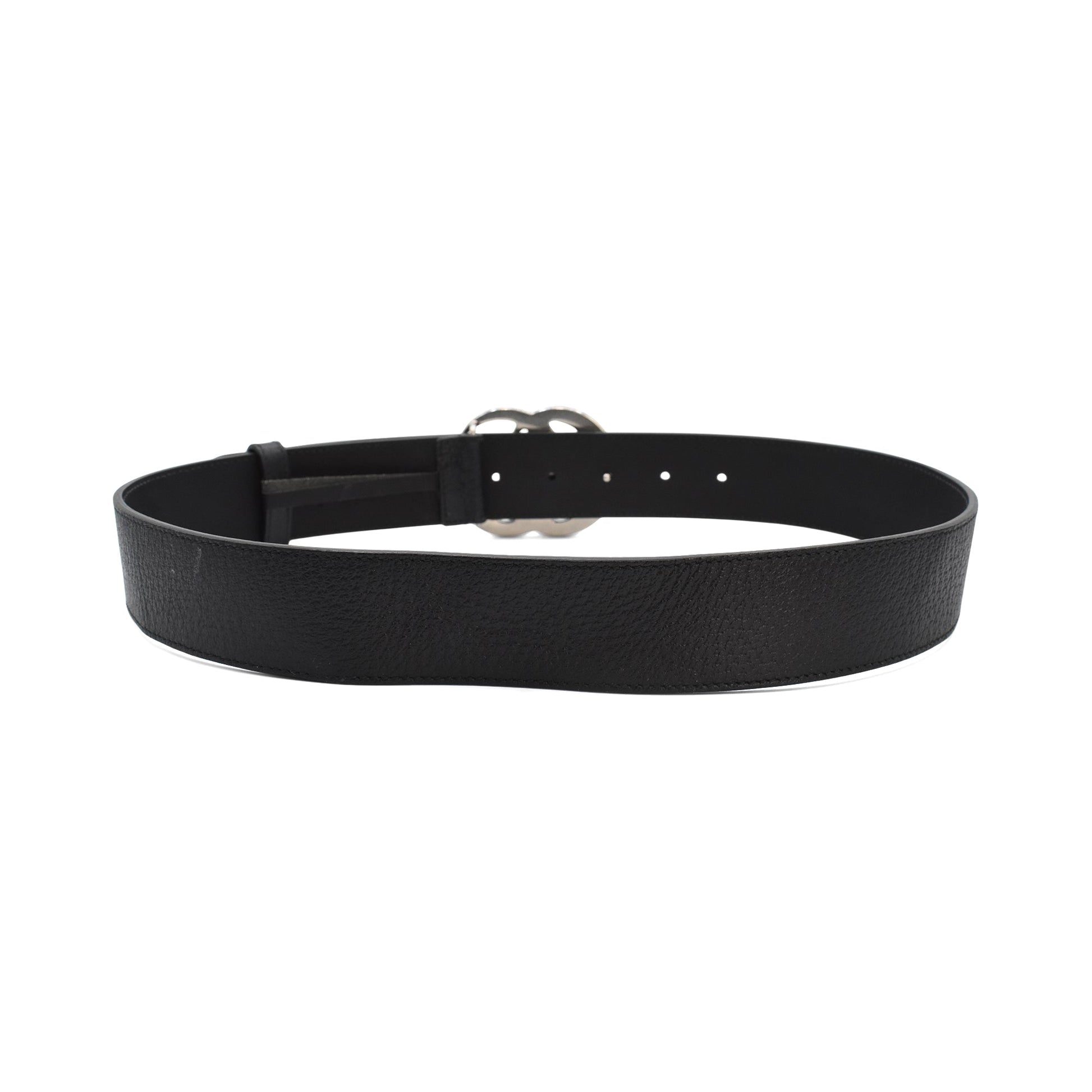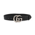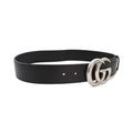 Gucci belt in black textured leather with silver 'GG Marmont' belt buckle.