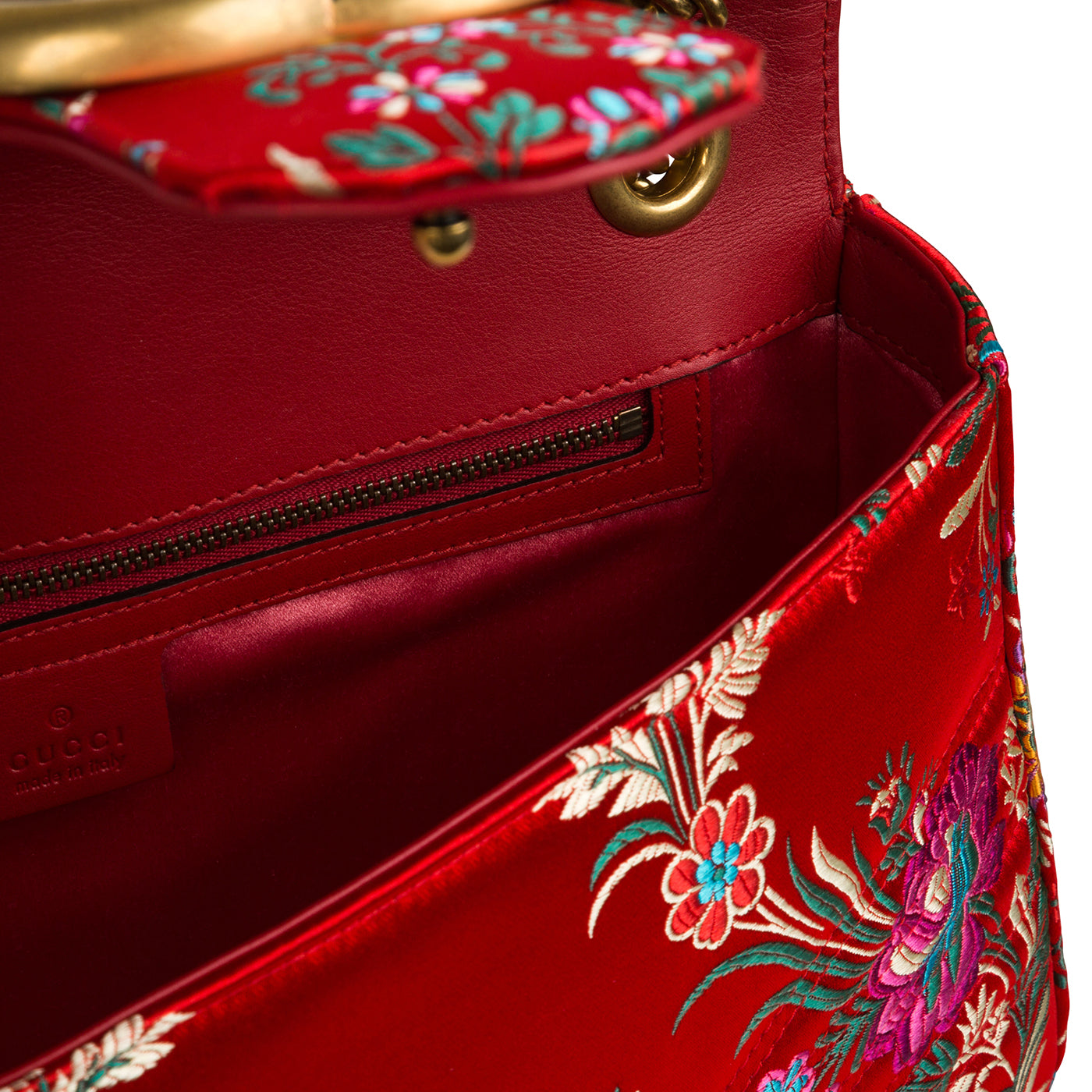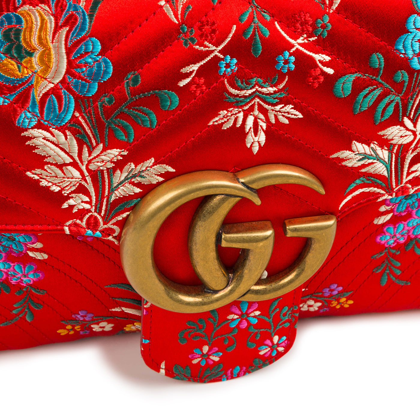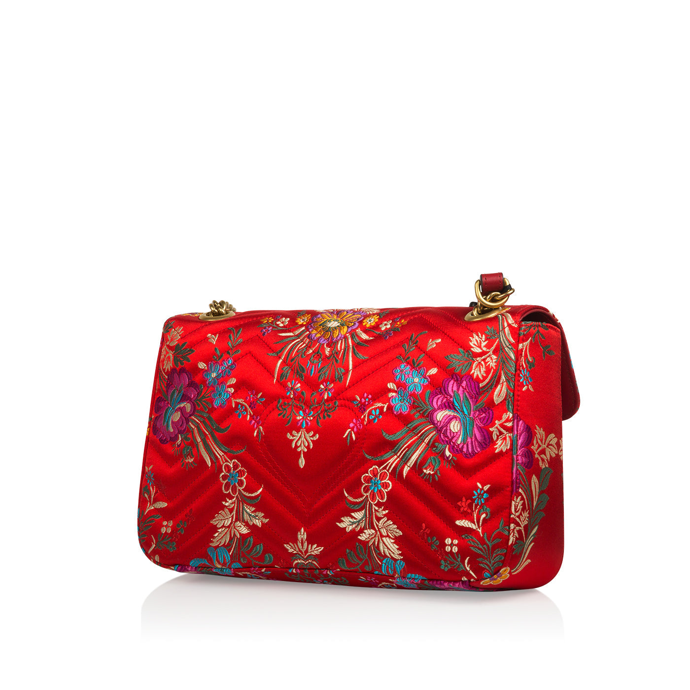 Gucci’s excessive decadence is vividly captured in the Red Floral Jacquard GG Marmont 2.0. Bearing the fashion house’s iconic silhouette, as re-imagined by Alessandro Michele for the SS17 collection, this handbag is the epitome of extravagance. This striking jacquard piece was crafted in Italy from sleek-red silk-satin and punctuated with the highly-coveted interlocking GG. The bag also features the sliding-chain strap which can be doubled up. Its oversized flap opens to reveal a stunning satin lined interior, featuring a single storage compartment. Perfect for pairing with a cocktail dress and painting the town red, this handbag is the ideal accessory for elevating your outfit.
