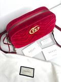 Gucci GG Marmont Matelasse Red Velvet Camera Shoulder Bag