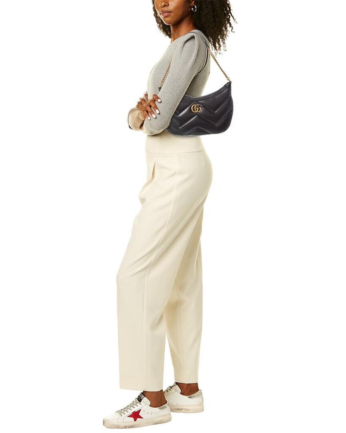 Elevate your accessory game with the Gucci GG Marmont Small Leather Shoulder Bag. Made in Italy with impeccable craftsmanship, this black leather shoulder bag features light fine gold hardware and the iconic interlocking G logo accent. The interior is lined with luxurious microfiber and includes an open pocket for easy organization. Measuring 10.2 inches wide by 6.6 inches high and 1.5 inches deep, this bag is the perfect size for your daily essentials. The shoulder strap has a 9-inch drop for comfortable wear, and the zipper closure keeps your belongings secure. Please note that all measurements are approximate. Rest assured, this Gucci handbag is genuine Add a touch of Italian luxury to your wardrobe with the Gucci GG Marmont Small Leather Shoulder Bag.