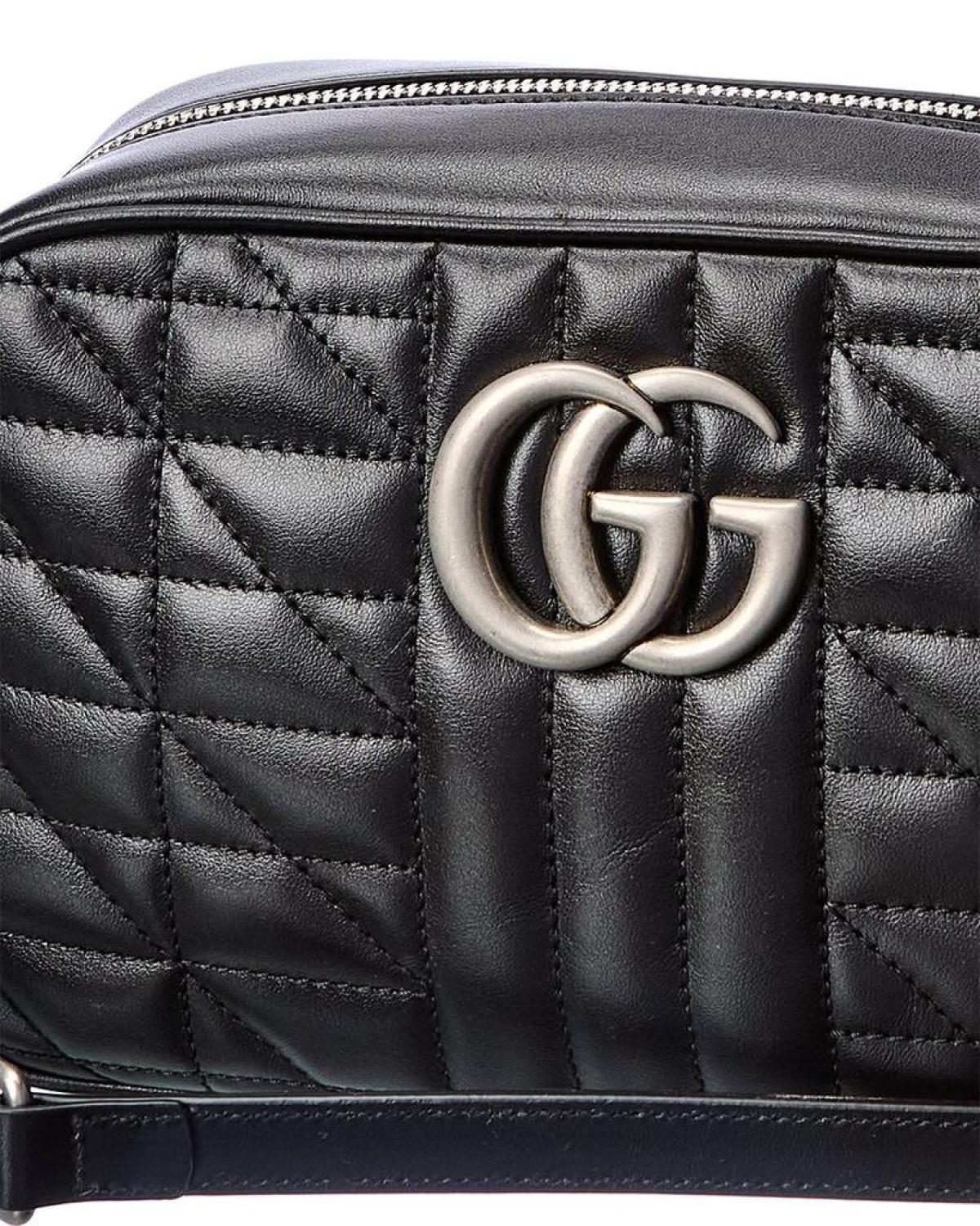 Introducing the Gucci GG Marmont Small Matelasse Leather Shoulder Bag, a luxurious blend of Italian craftsmanship and timeless design. With its iconic interlocking G logo and dark silver hardware, this black matelassé leather shoulder bag is a true statement piece. The GG Marmont bag exudes elegance and sophistication, making it a must-have accessory for every fashion-forward woman. Inside, you'll find a microfiber lining and an interior pocket, providing practicality without compromising style. The bag measures 9.5 inches in width, 5.5 inches in height, and 3 inches in depth, making it the perfect size for your daily essentials. Designed for convenience, the adjustable shoulder strap allows for a drop of 23 inches, ensuring a comfortable fit for any occasion. The zipper closure provides security and peace of mind, keeping your belongings safe and sound. Please note that all measurements were taken by hand and are approximate, allowing for slight variations. Rest assured, our products are genuine and . In some cases, we may source merchandise from trusted independent suppliers, rather than directly from the brand owner. However, we stand behind the ity of every product sold on our site. Elevate your style with the Gucci GG Marmont Small Matelasse Leather Shoulder Bag. Shop now and experience the eclectic and coveted Italian luxury redefined by Gucci.