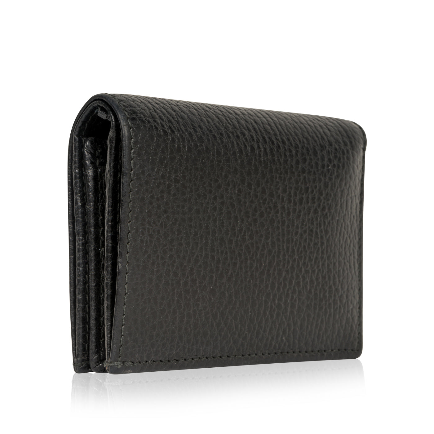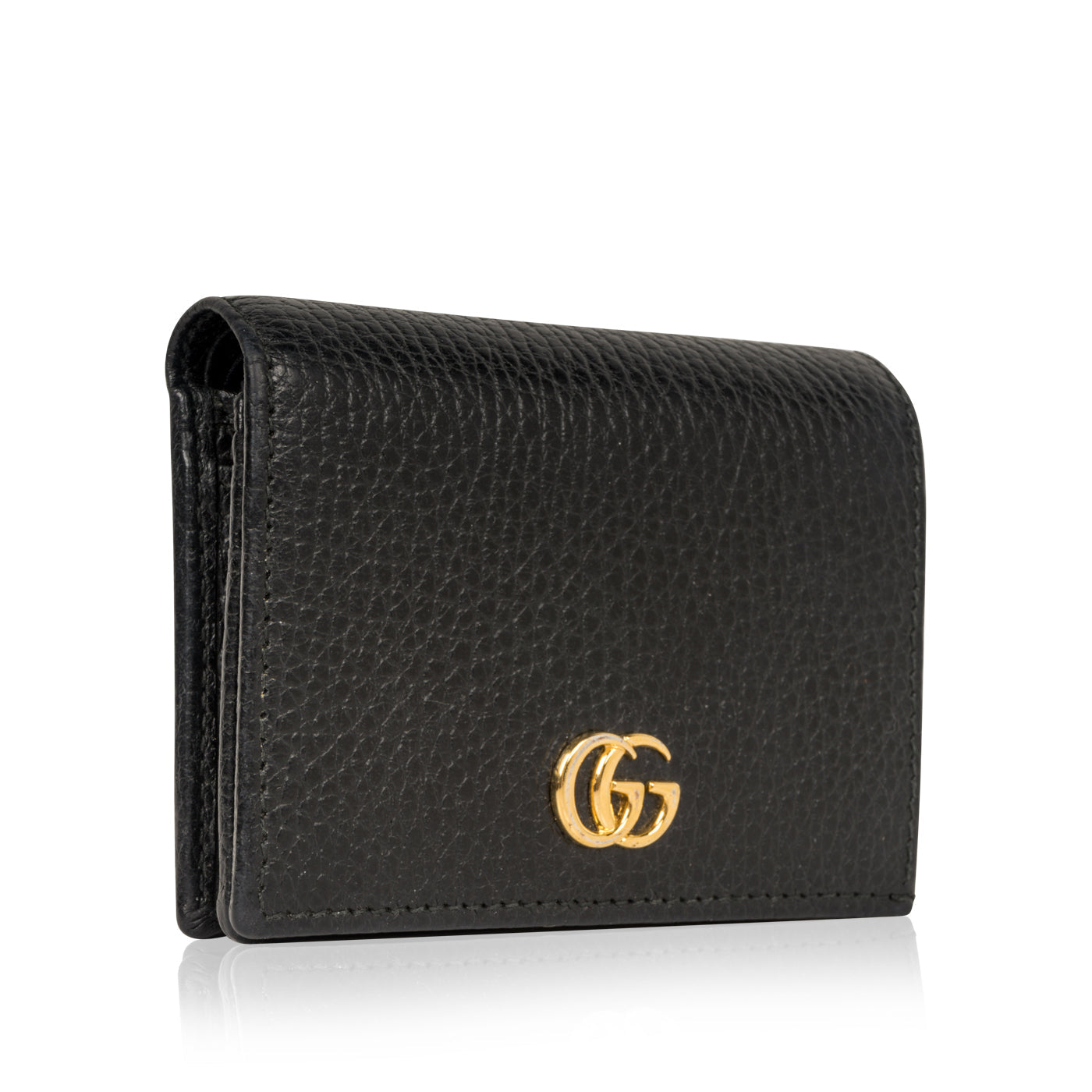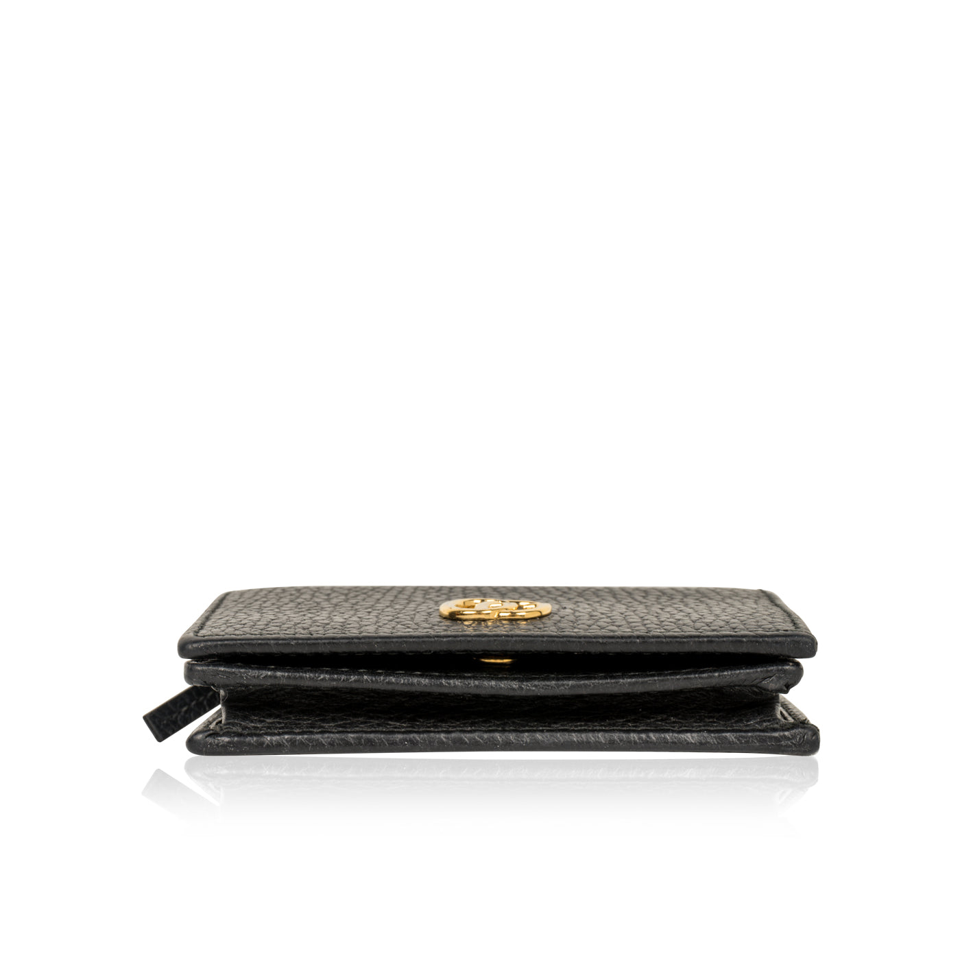 Why are wallets always so big? Why are cardholder's the perfect size but also so inconvenient for cash and change? Why can we never find the perfect in between? Just kidding, we found one and she's right here. This itsy, bitsy, teeny, tiny wallet from Gucci features everything you've been looking for. Small but mighty, you can easily fit all your cards, bills and yes, even loose change inside this little gem - and her gorgeous appearance is just the cherry on top. Crafted from black grained leather and complimented by a gold-tone GG logo, this chic, stylish and practical little baby is just a piece that everyone needs in their life. The perfect balance between fashion and function, this GG wallet is a true must-have for any woman with a love for luxury and all-things glam.