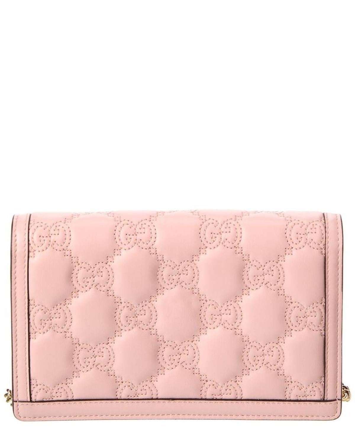 Introducing the Gucci GG Matelasse Leather Shoulder Bag, a true epitome of Italian luxury redefined. Crafted with exquisite attention to detail, this elegant accessory is designed for the modern woman who appreciates eclectic and coveted fashion.Made in Italy, this shoulder bag showcases the impeccable craftsmanship and timeless style synonymous with the Gucci brand. Constructed from light pink leather and adorned with light fine gold hardware, it exudes understated elegance. The meticulously stitched interlocking G logo accent adds a touch of iconic sophistication.The interior of this handbag is thoughtfully designed with fabric lining, featuring a zippered pocket, card slots, and a fixed mirror. With dimensions measuring 7.8 inches wide, 5 inches high, and 1.5 inches deep, it provides ample storage while maintaining a sleek and compact silhouette.For added versatility, the removable shoulder strap offers a drop length of 21 inches, allowing you to wear it as a shoulder bag or carry it as a clutch. The fold-over flap with snap closure ensures the security of your belongings while adding a stylish finishing touch.Please note that all measurements were taken by hand, and slight variations may occur, adding to the unique charm of each piece. It is important to highlight that our products are genuine. While we sometimes source from trusted independent suppliers, we stand by the ity of every product sold on our site.Upgrade your accessory collection with this Gucci GG Matelasse Leather Shoulder Bag. It is a true testament to the brand's commitment to luxury, style, and enduring elegance.