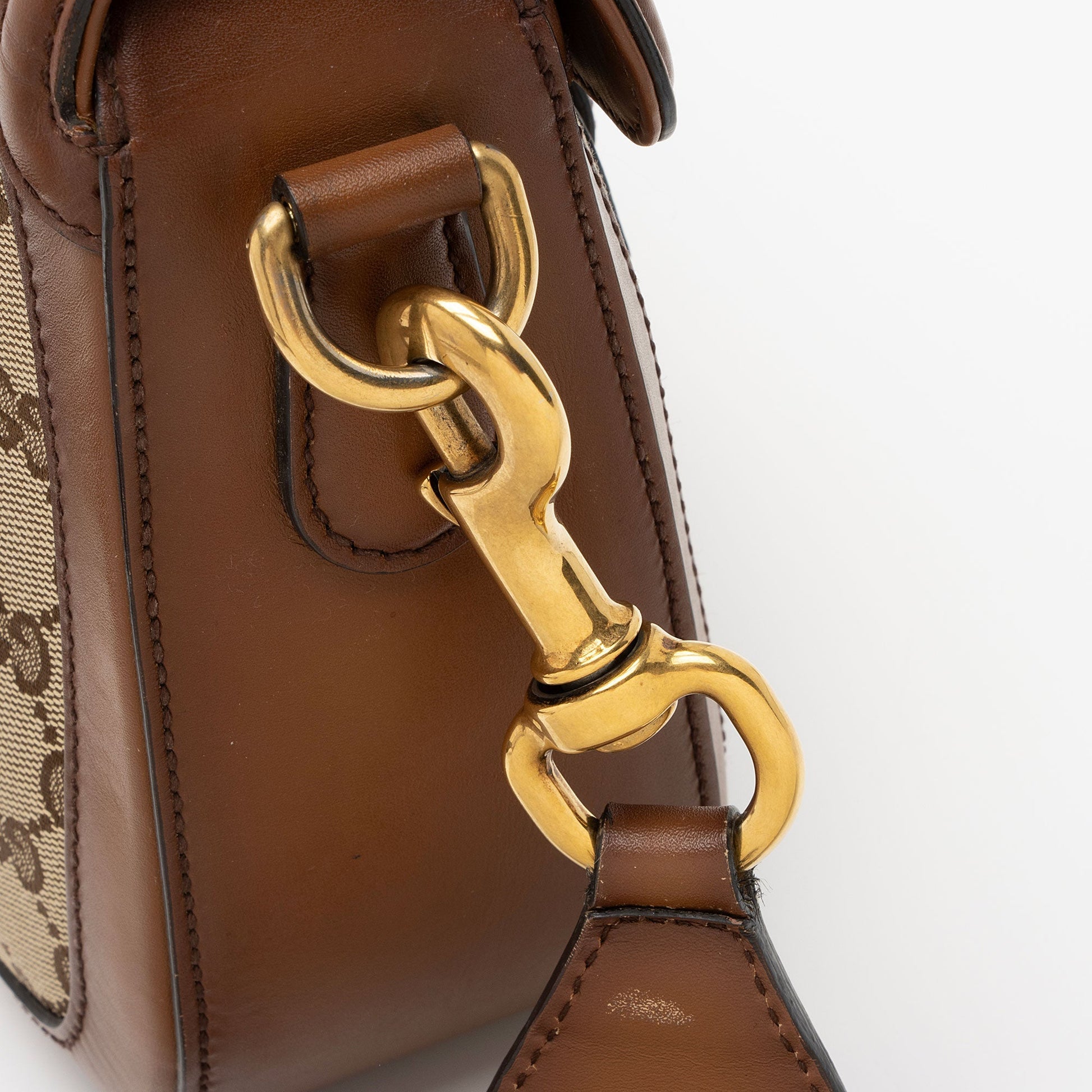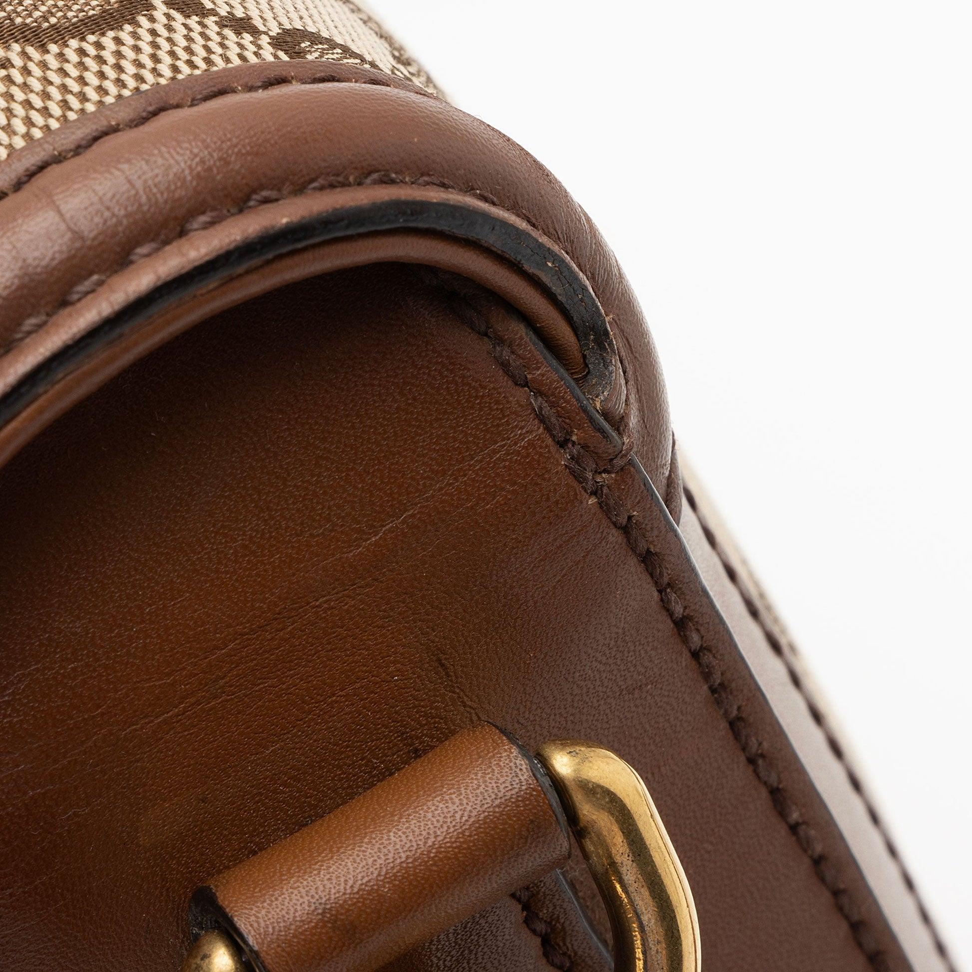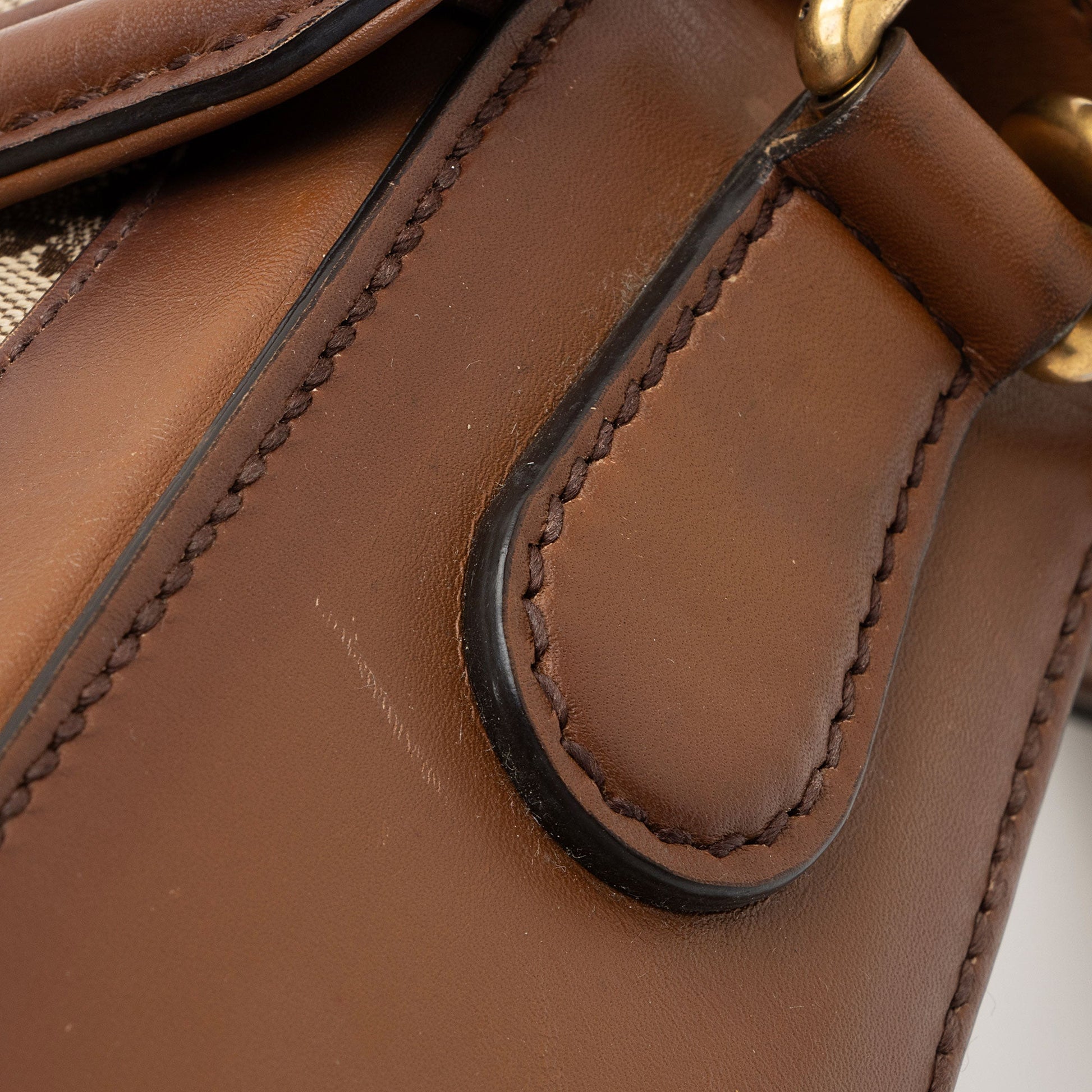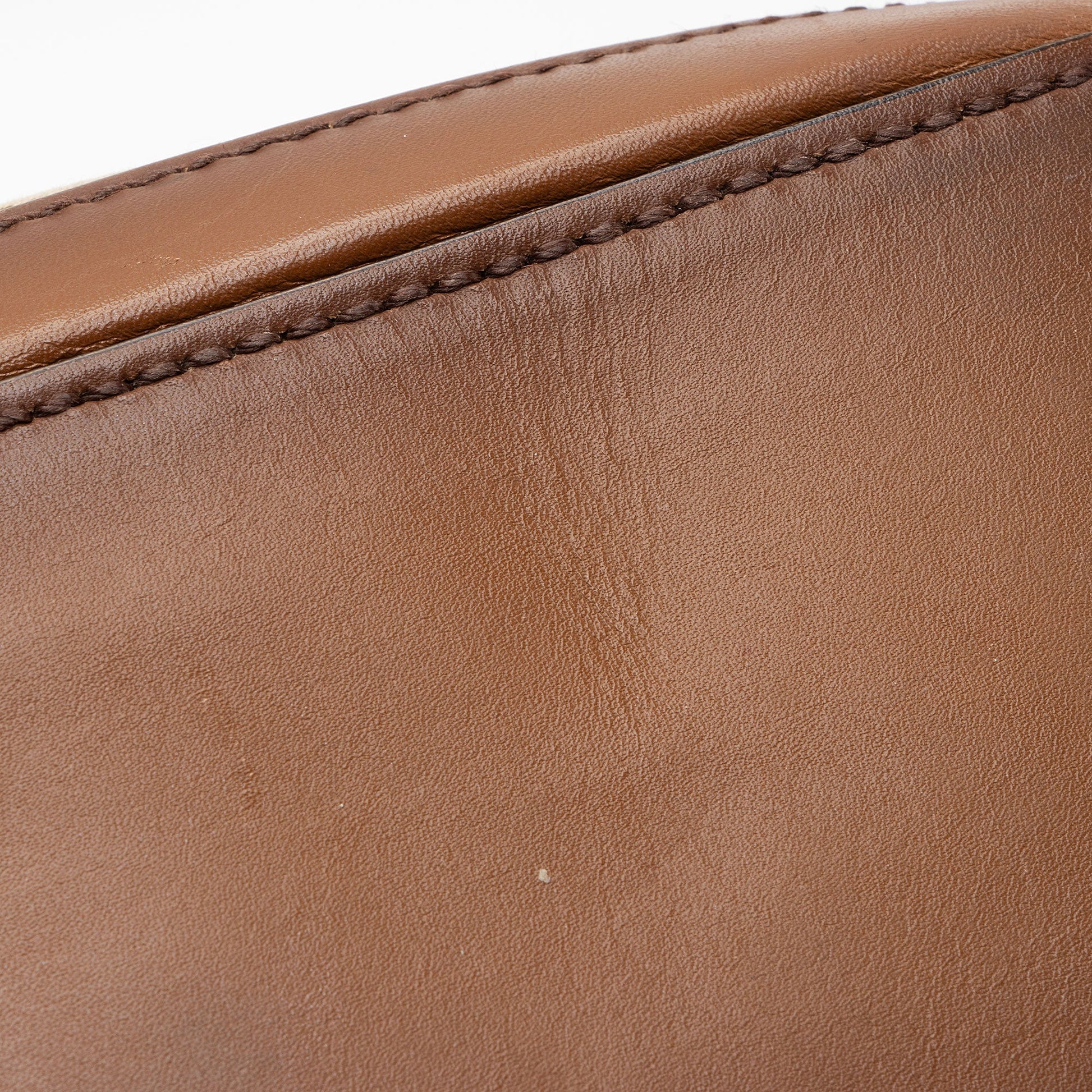 Condition Notes: Moderate scuffs and light creasing throughout exterior leather trim. Minor marks throughout exterior canvas. Visible marks to shoulder strap bases. Light creasing and pilling throughout shoulder strap. Surface scratches to hardware. Visible creasing and light scuffs throughout interior flap. Light marks and wear throughout interior. Light storage odor.