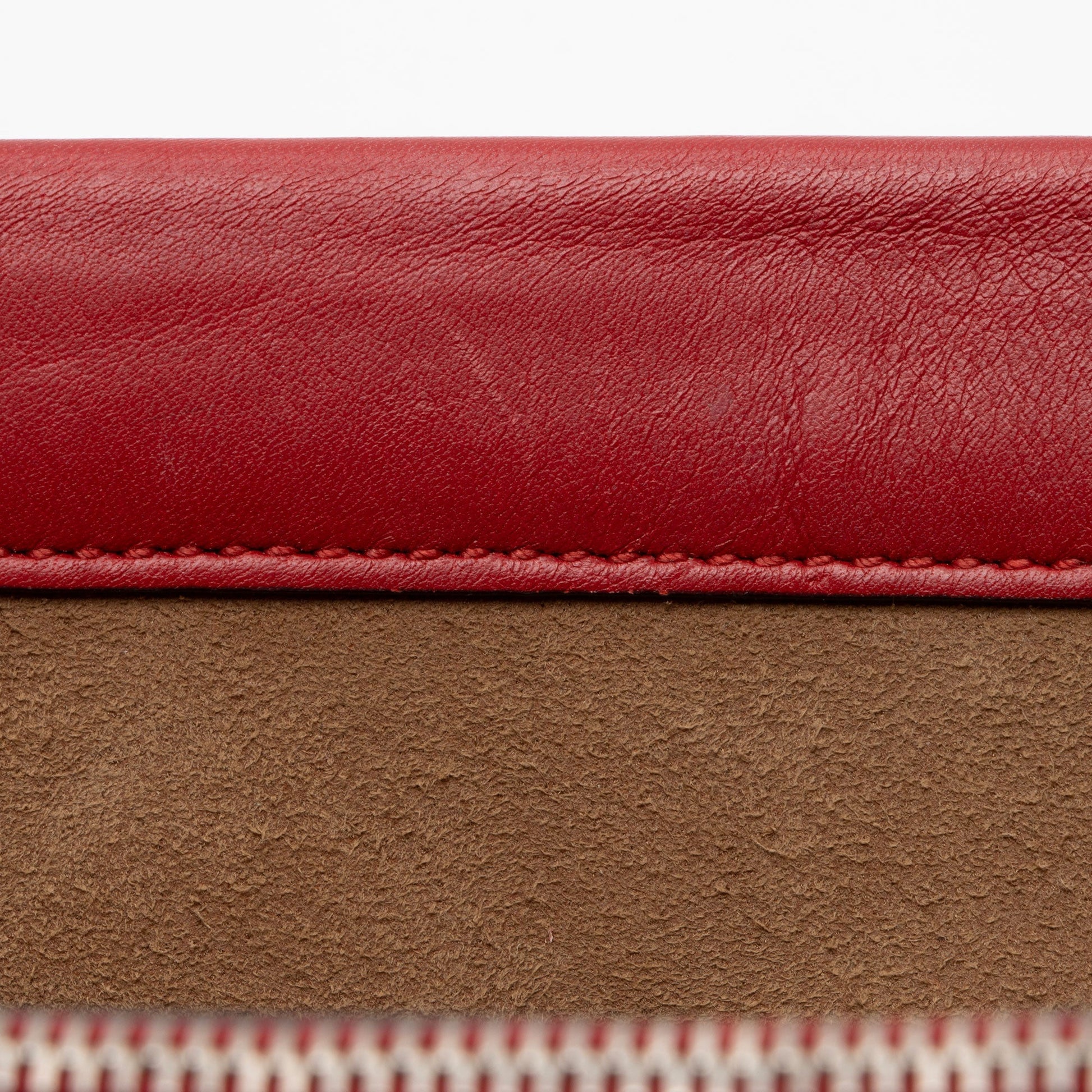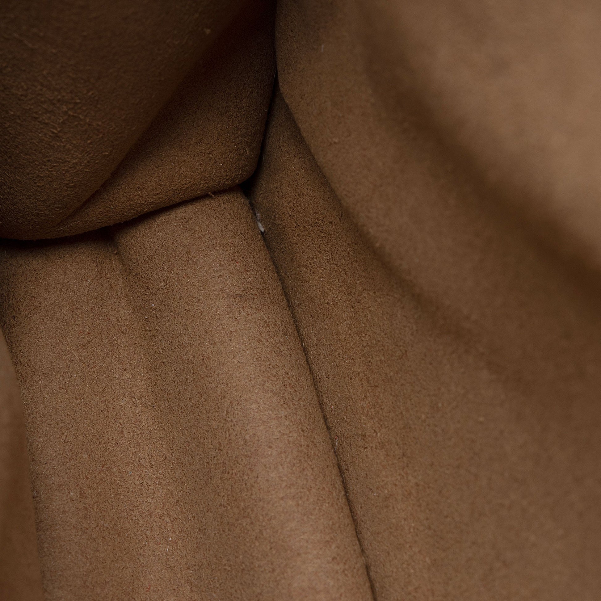 Condition Notes: Loss of structure and light scuffs to exterior bottom corners. Surface scratches to hardware. Heavy scuffs and imprints throughout interior leather flap. Marks and darkening throughout interior.