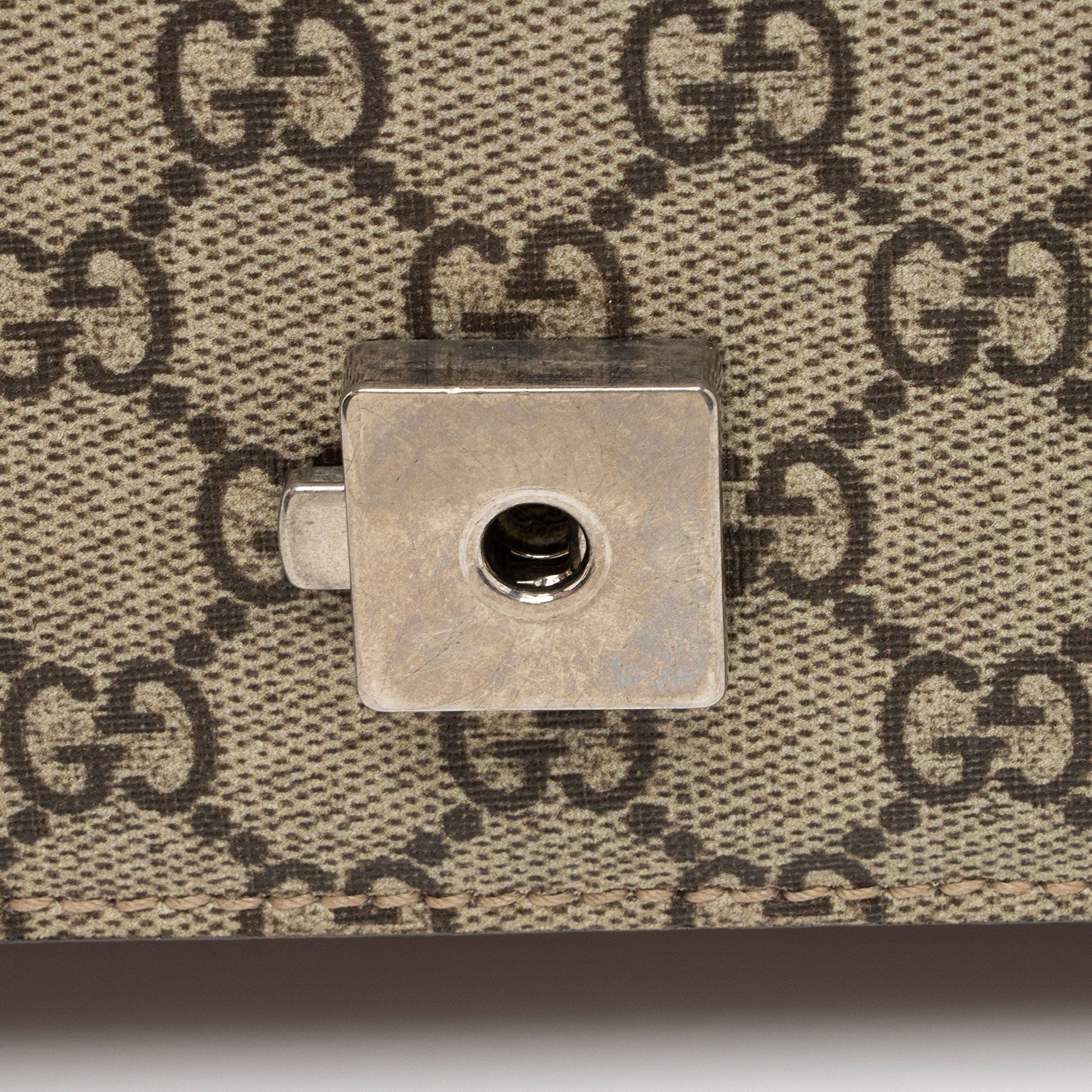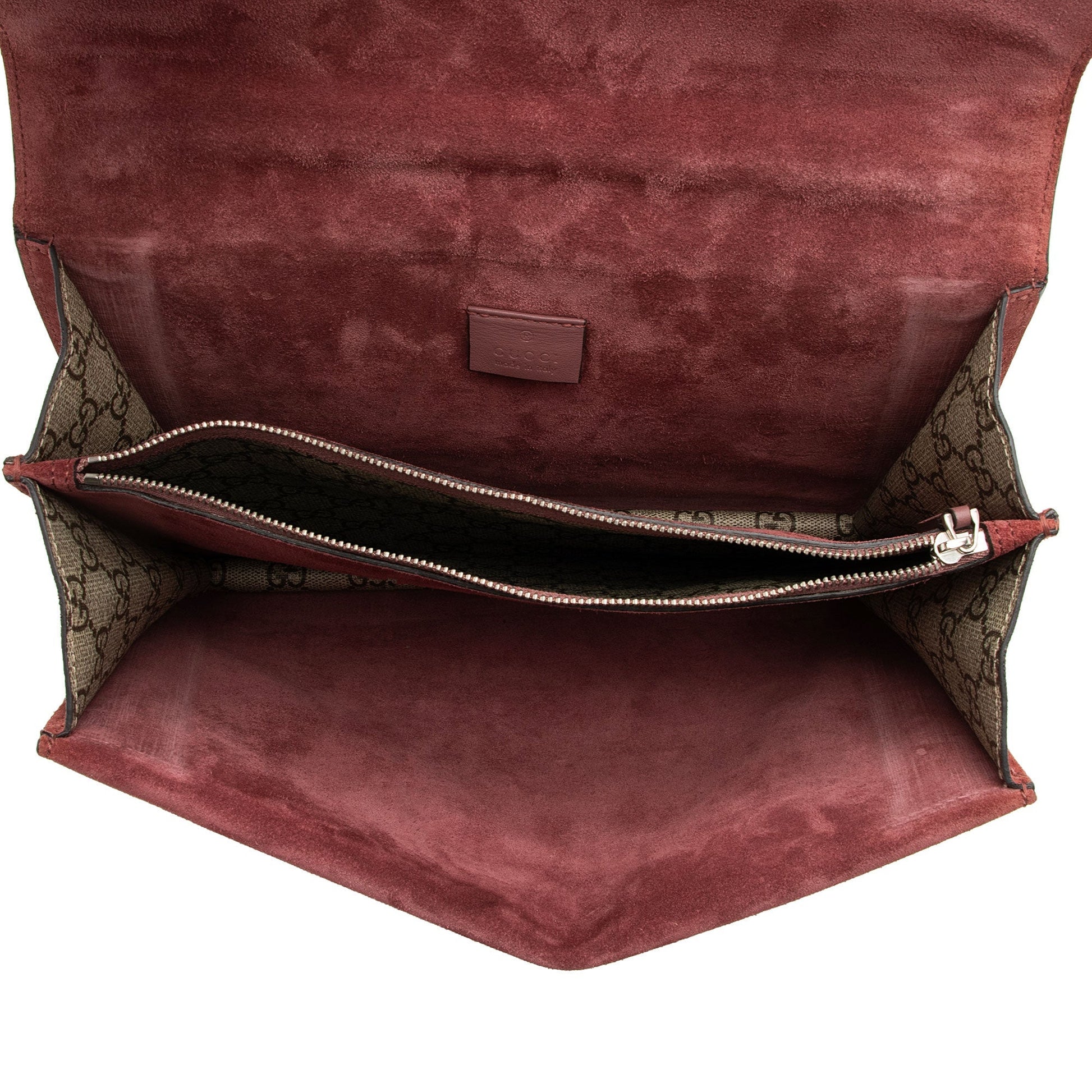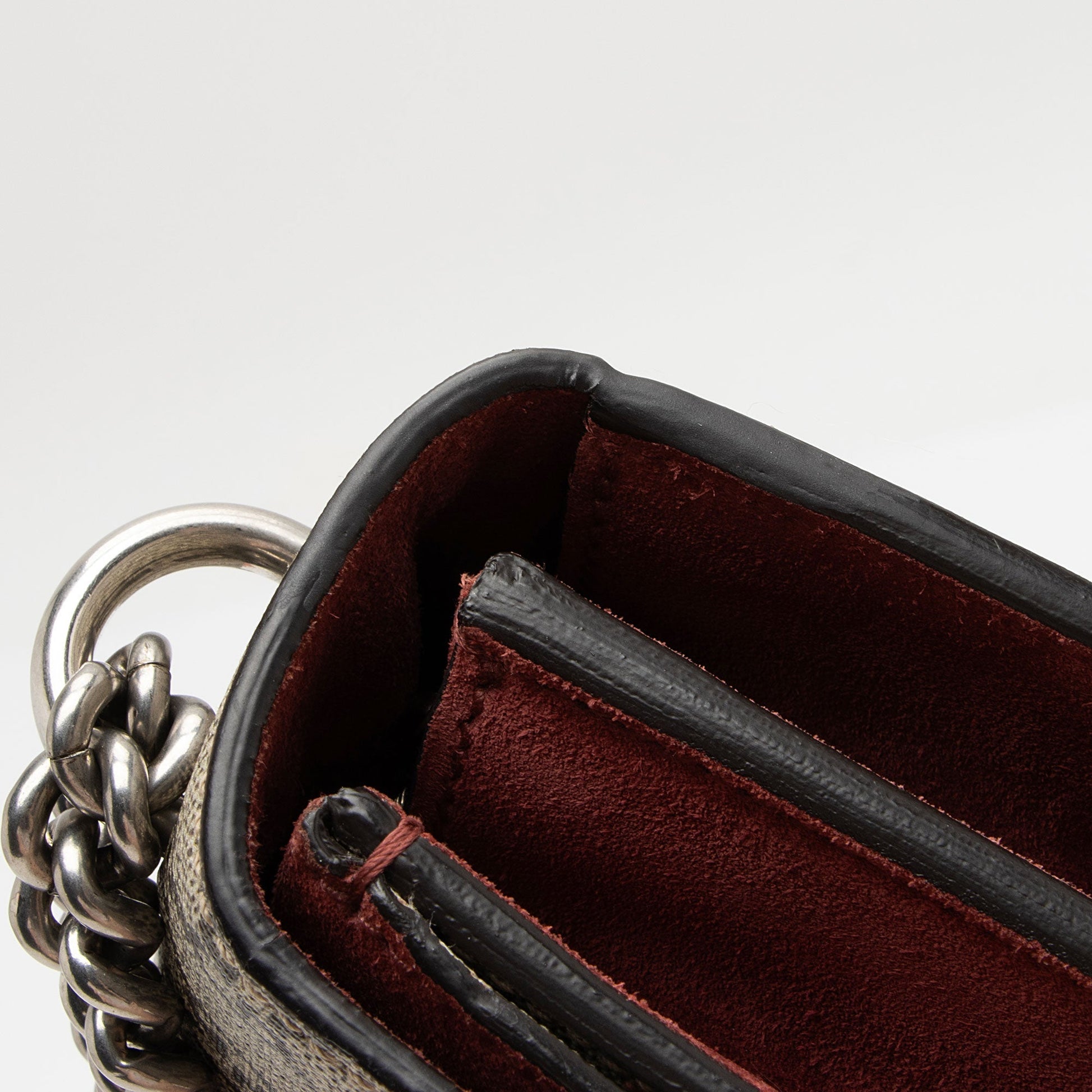 Condition Notes: Scuffs, marks, and minor darkening throughout exterior suede. Minor wear to exterior bottom corners. Light surface scratches to hardware. Visible scuffs and wear throughout interior.