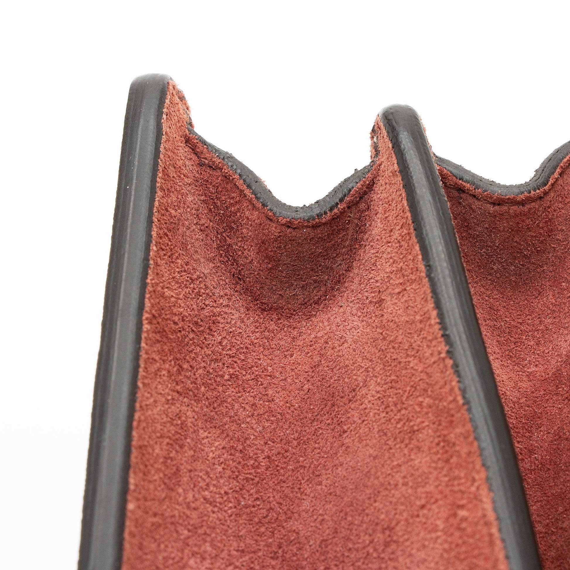 Condition Notes: Fading and wear throughout exterior suede. Minor scuffs to exterior bottom corners. Surface scratches to hardware. Visible scuffs and wear throughout interior.