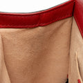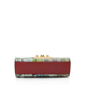 Condition Notes: Scuffs and wear to exterior bottom corners. Light marks and minor discoloration throughout exterior. Visible darkening, imprints, and marks throughout exterior back pocket. Heavy surface scratches and tarnishing to closure hardware. Surface scratches and tarnishing to hardware. Imprints and creasing throughout interior flap. Marks and darkening throughout interior.