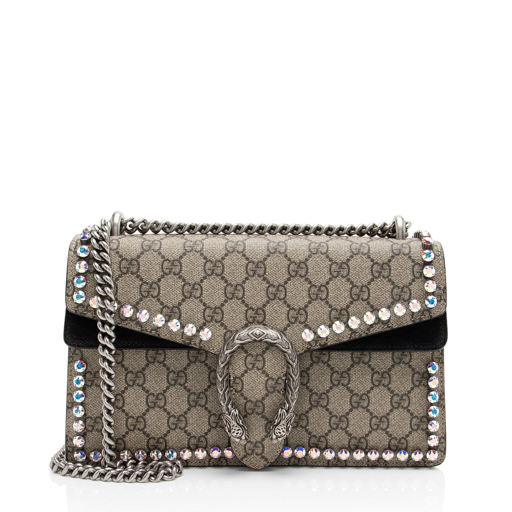 Gucci GG Supreme Crystal Studded Dionysus Small Shoulder Bag