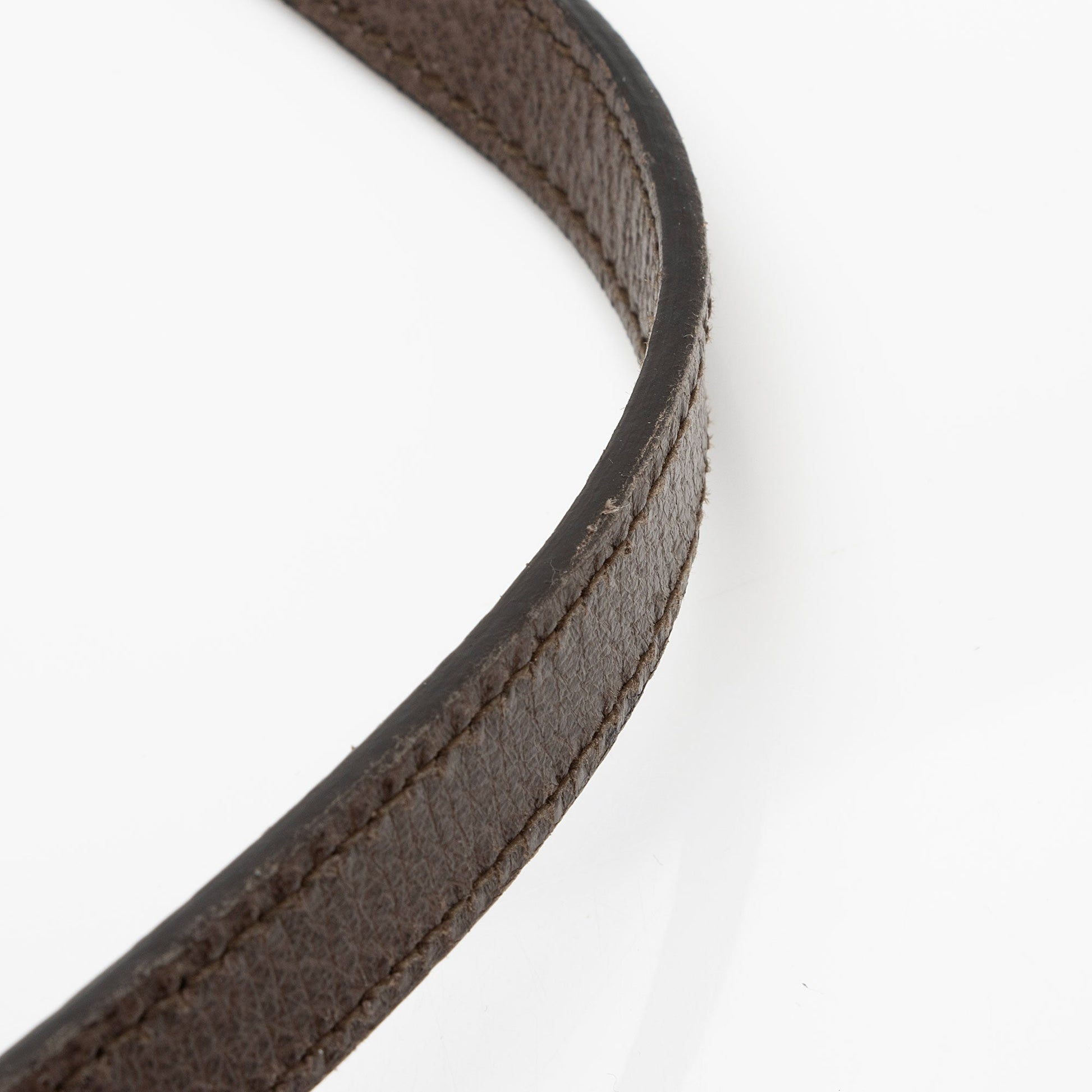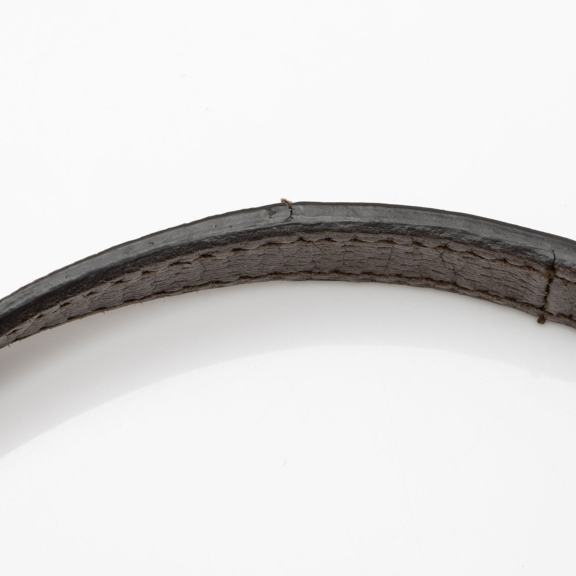 Condition Notes: Visible scuffs to exterior bottom corners. Minor scuffs throughout exterior leather trim. Surface scratches to hardware. Marks throughout interior.