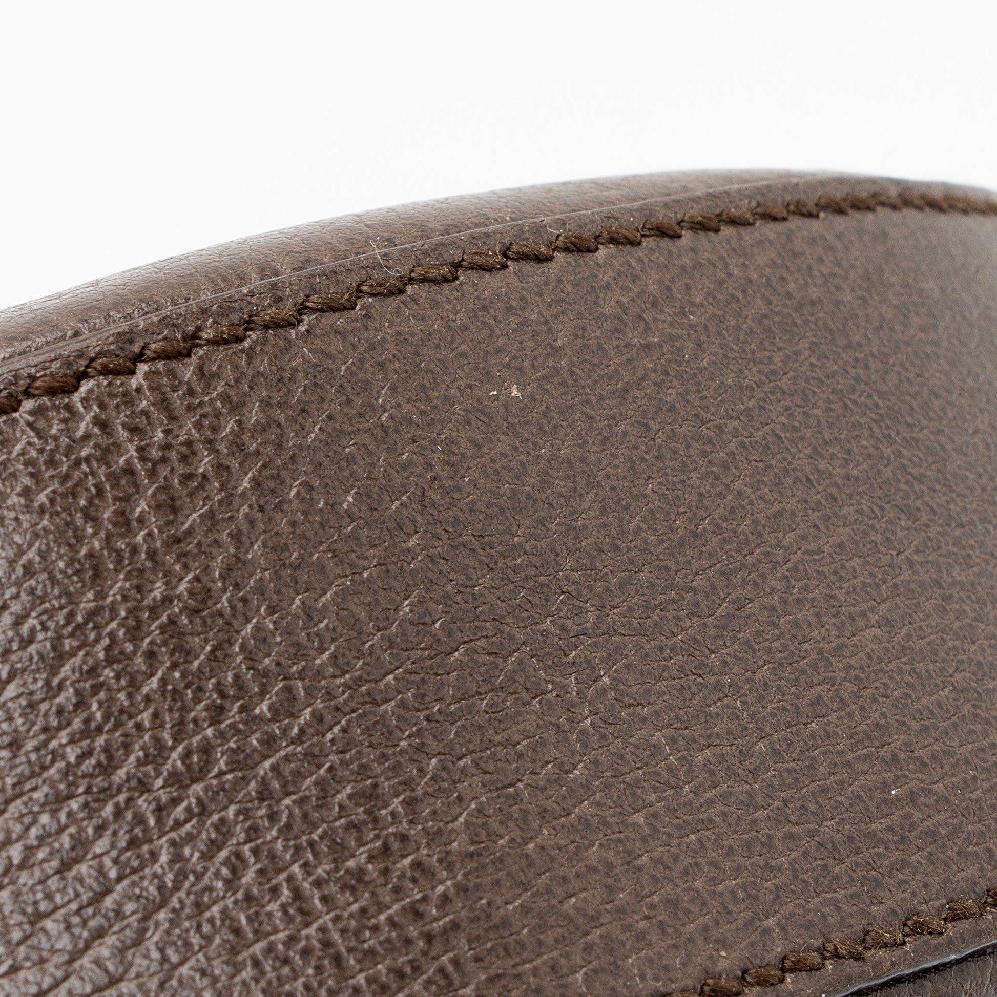 Condition Notes: Minor scuffs and wear throughout exterior leather trim. Light surface scratches to hardware. Marks and light darkening throughout interior.