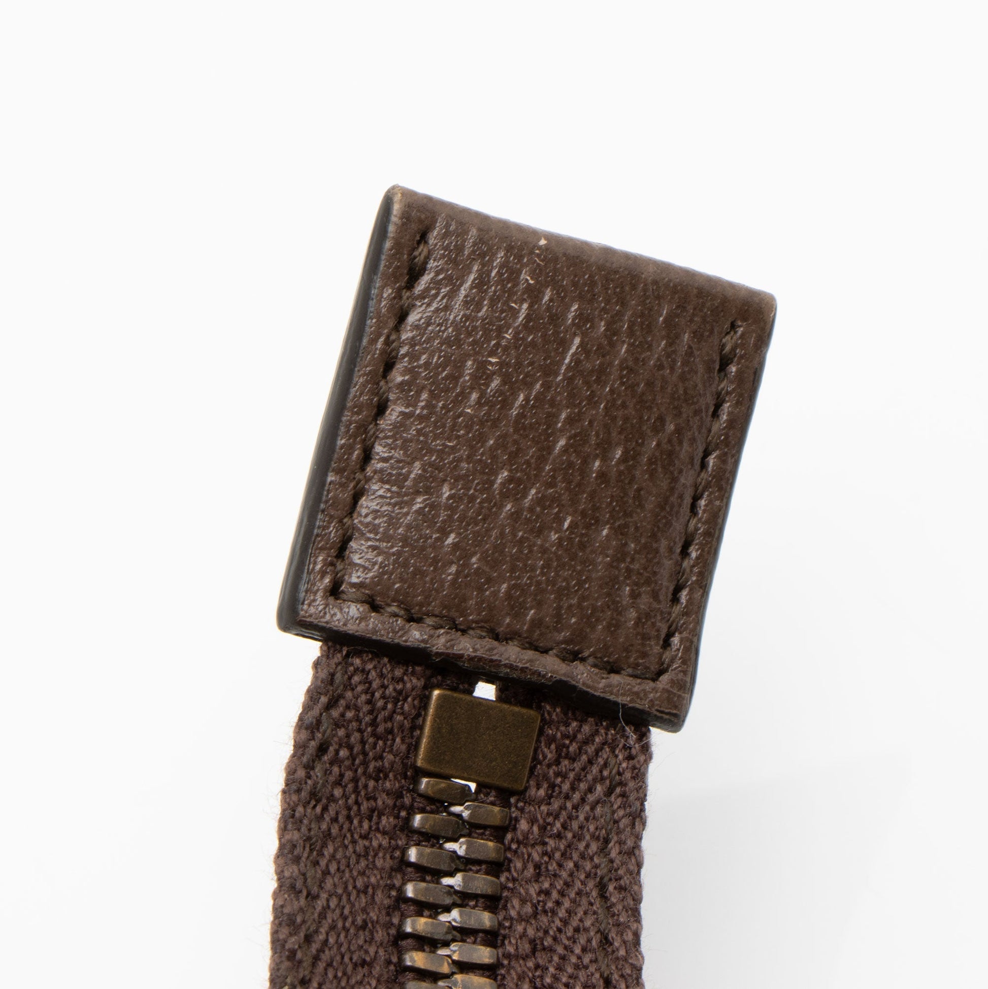 Condition Notes: Light scuffs throughout exterior leather piping. Surface scratches to hardware. Marks and darkening throughout interior.