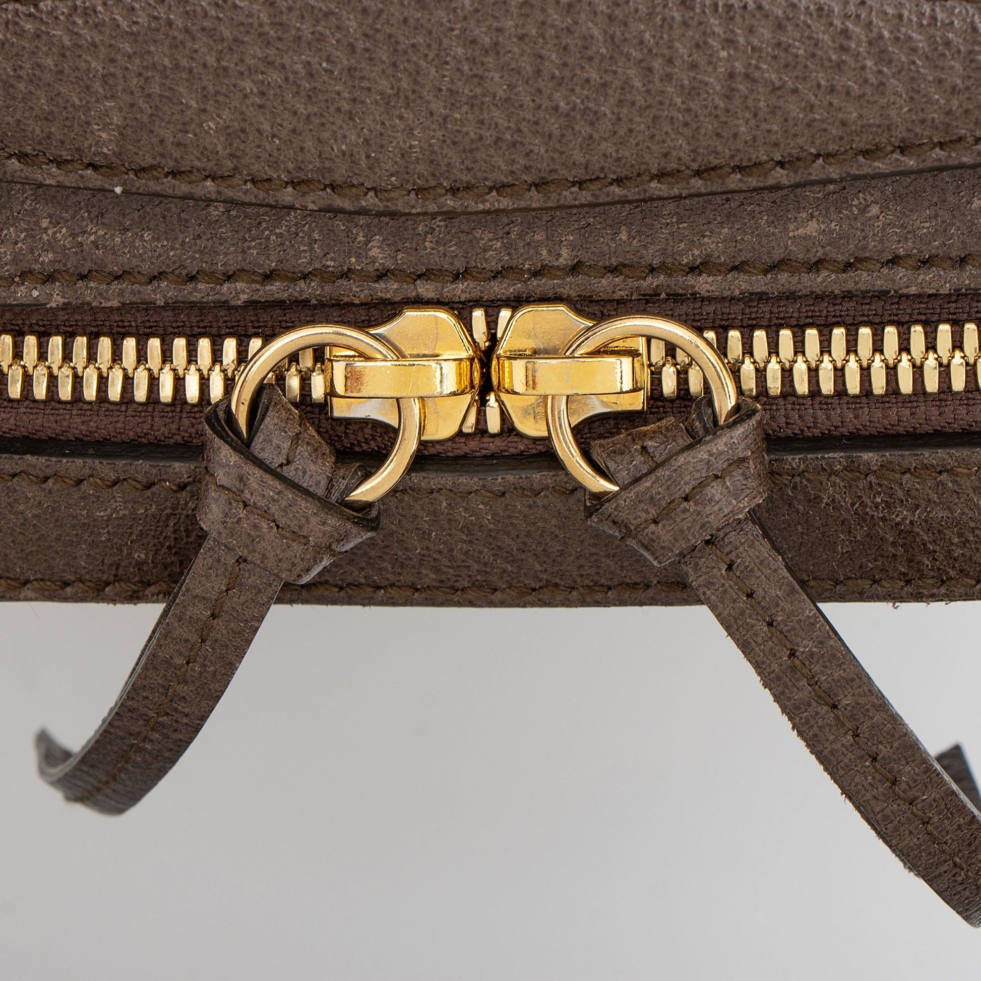 Condition Notes: Minor stretching throughout exterior. Light surface scratches to hardware. Light marks and darkening throughout interior.