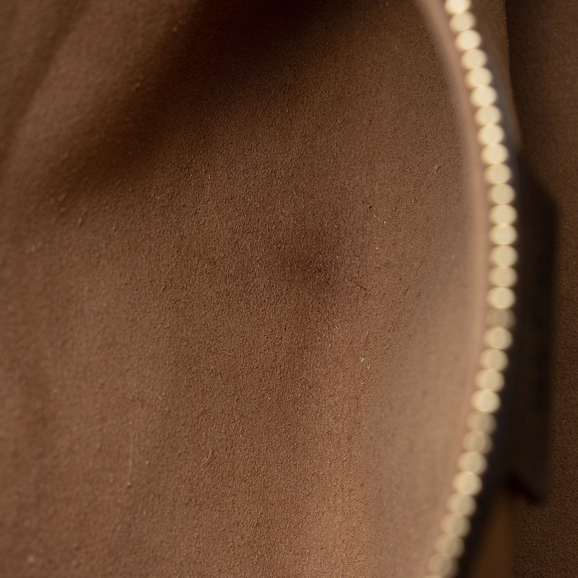 Condition Notes: Minor scuffs to exterior bottom corners. Minor creasing and scuffs throughout exterior leather trim. Light wear throughout handle leather. Light surface scratches to hardware. Visible marks to interior.