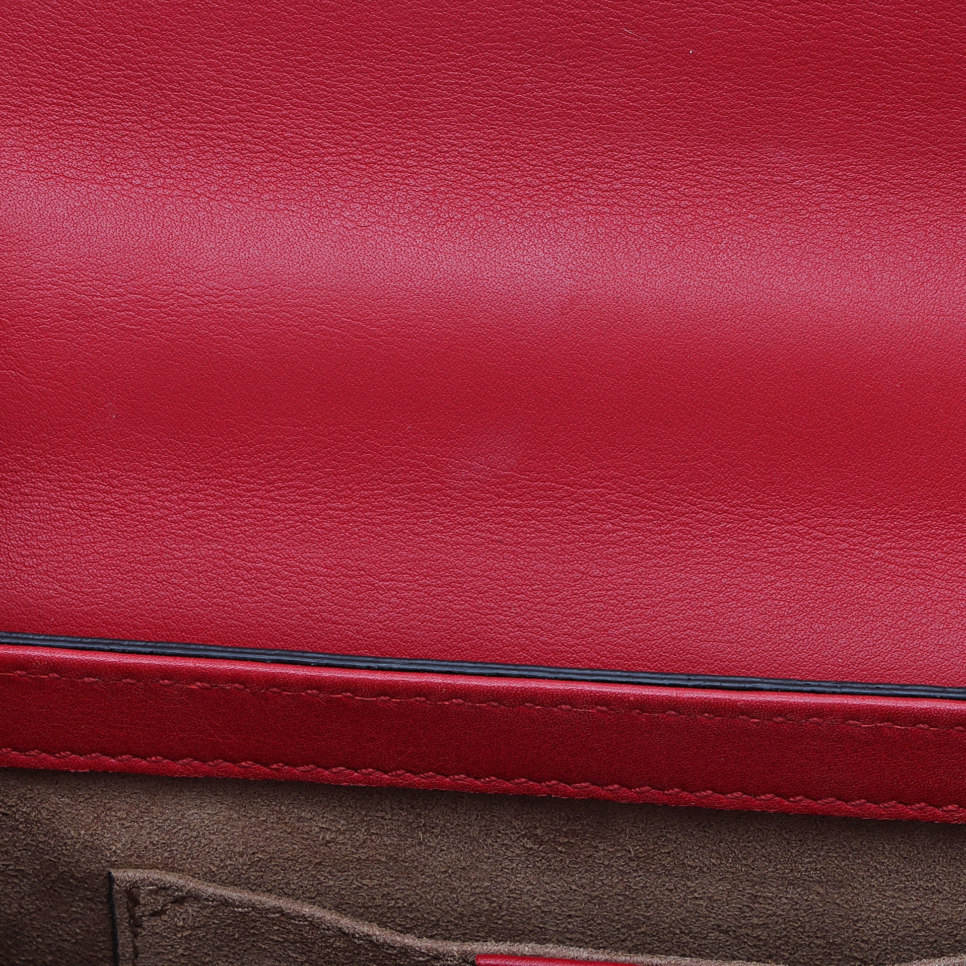 Condition Notes: Light scuffs and imprints throughout exterior leather. Subtle scuffs to exterior bottom corners. Visible surface scratches to hardware. Imprints and light creasing throughout interior flap. Light darkening and wear throughout interior.