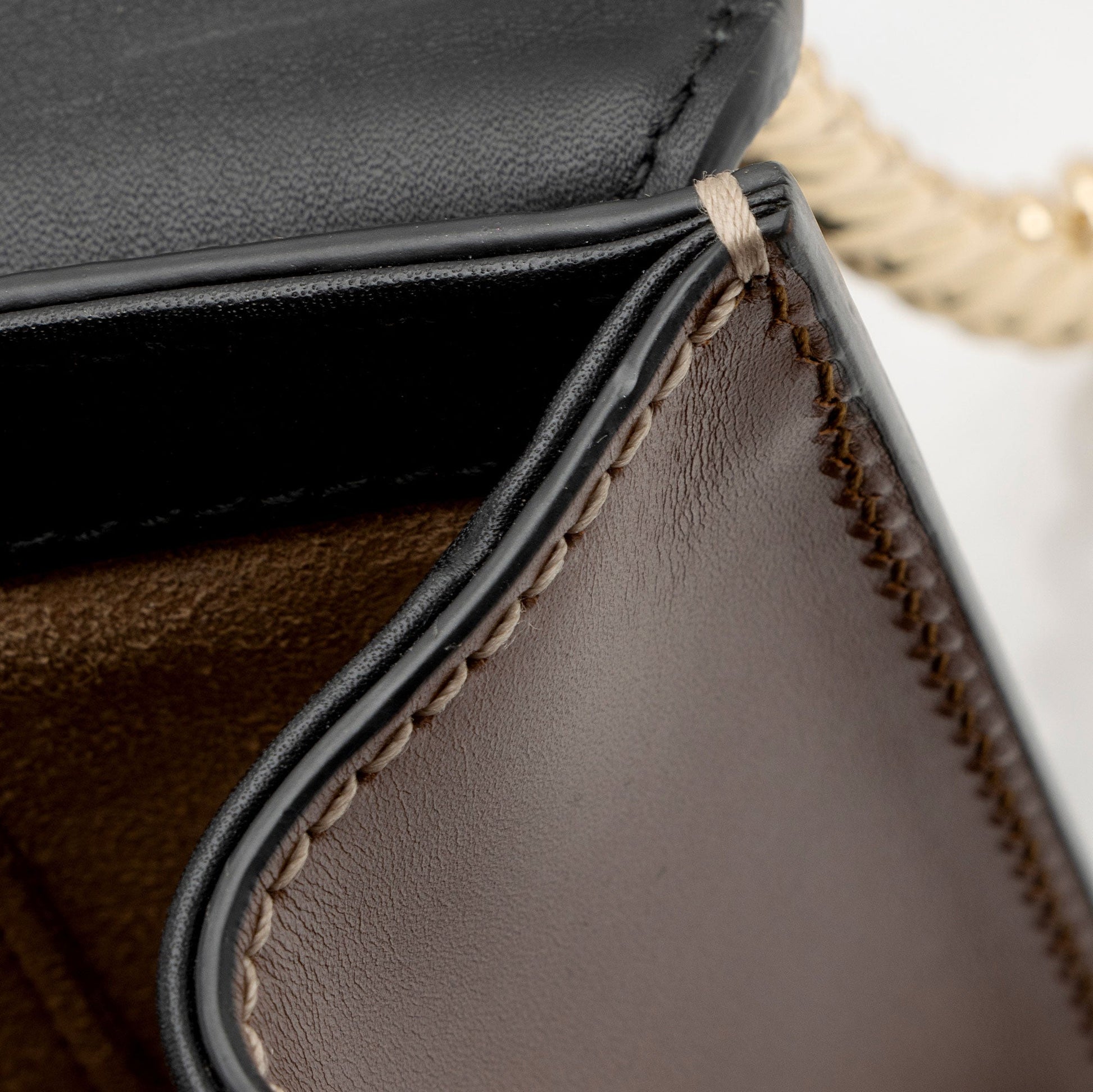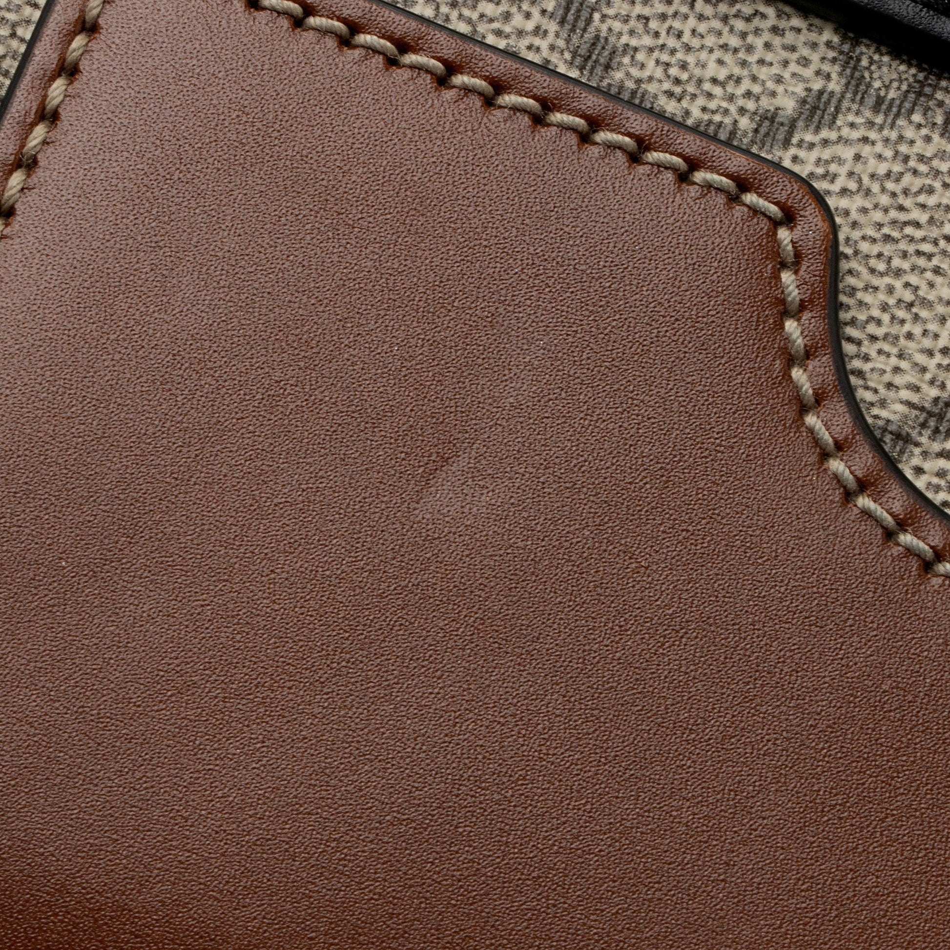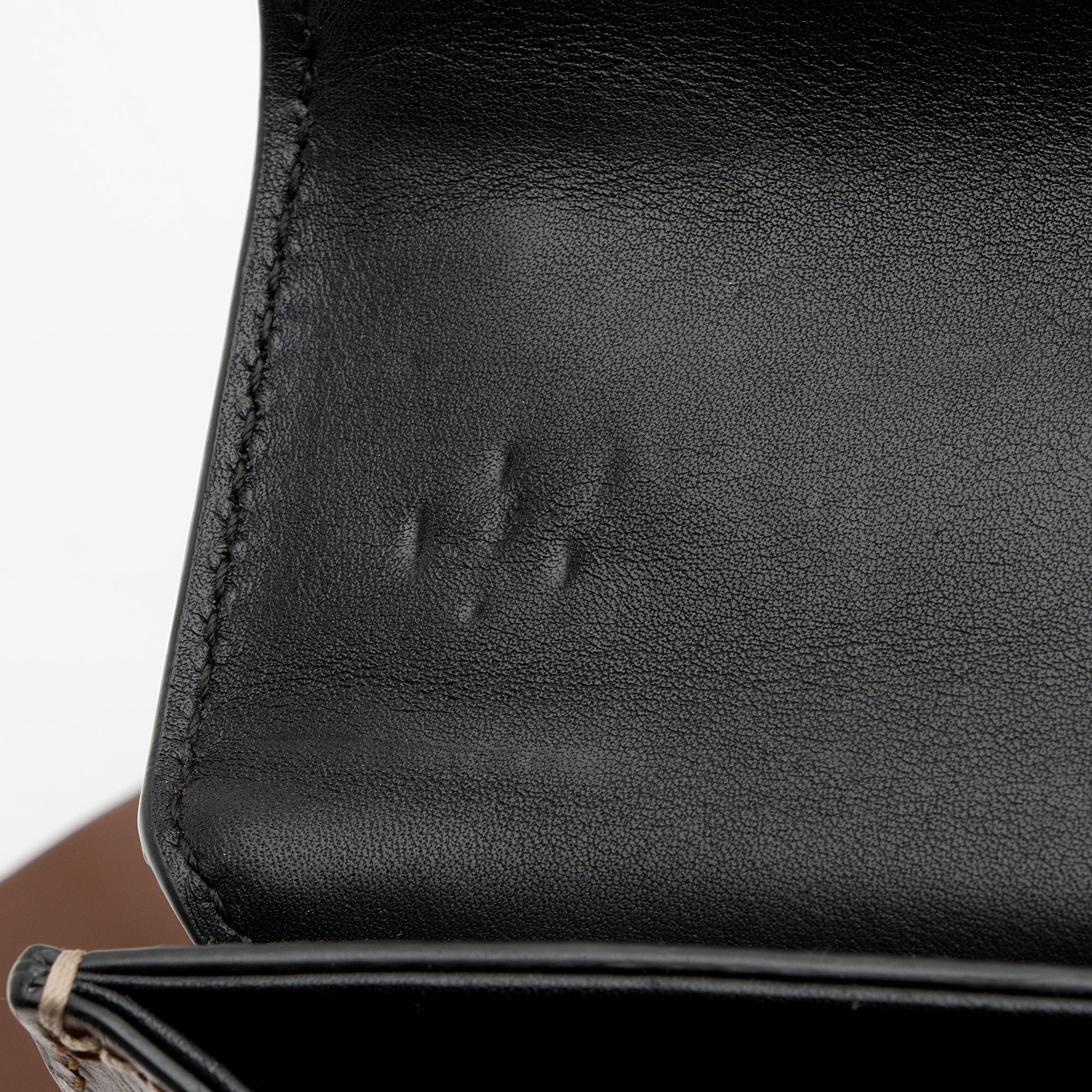 Condition Notes: Scuffs and imprints throughout exterior leather. Scuffs to exterior bottom corners. Visible surface scratches to hardware. Visible imprints and wear throughout interior flap. Marks and darkening throughout interior.