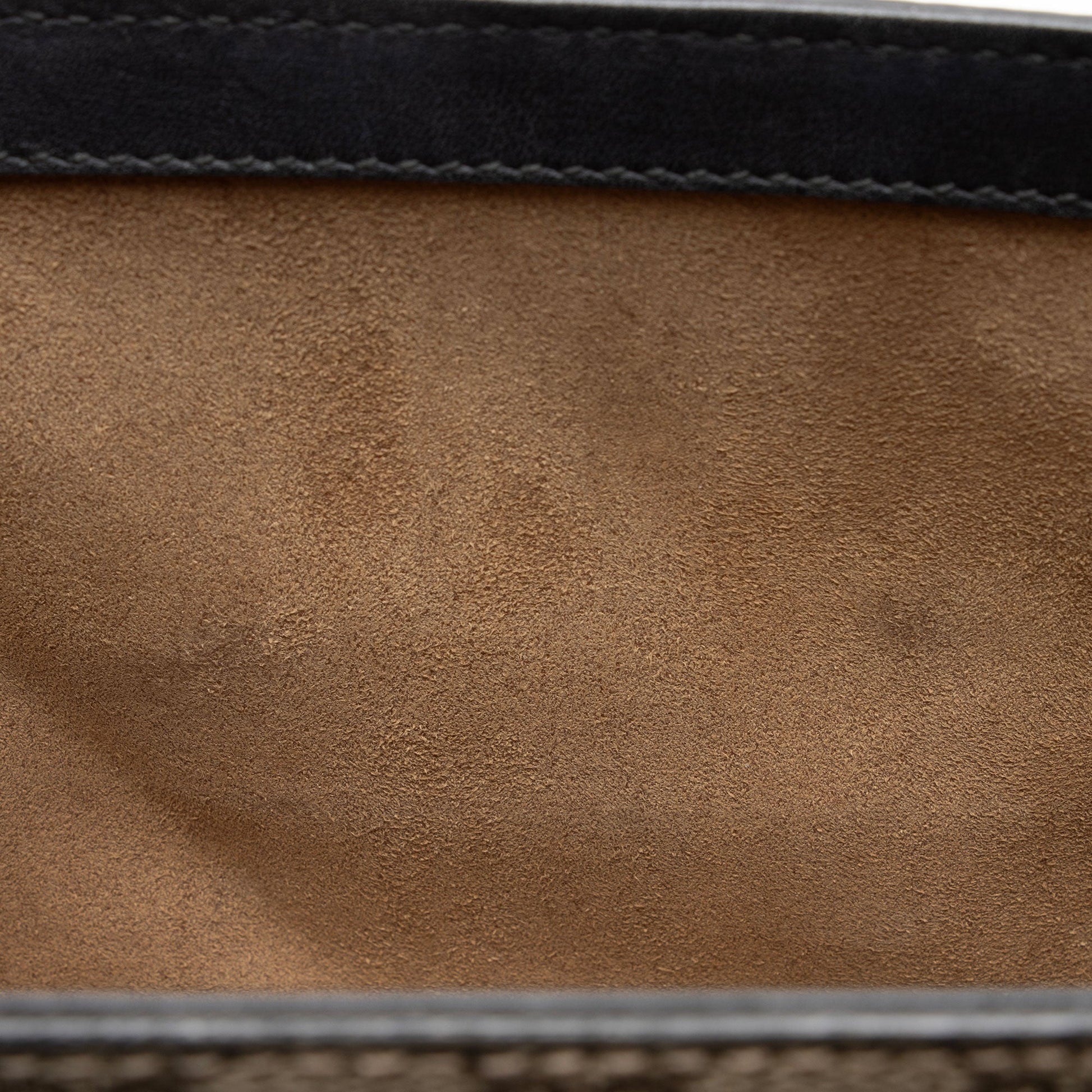 Condition Notes: Visible scuffs and light creasing throughout exterior top leather flap. Light scuffs to exterior bottom corners. Moderate scuffs and light imprints to exterior back pocket. Darkening, marks, and scuffs throughout clochette. Moderate surface scratches and light tarnishing to hardware. Visible creasing and scuffs throughout interior pocket. Darkening and marks throughout interior.