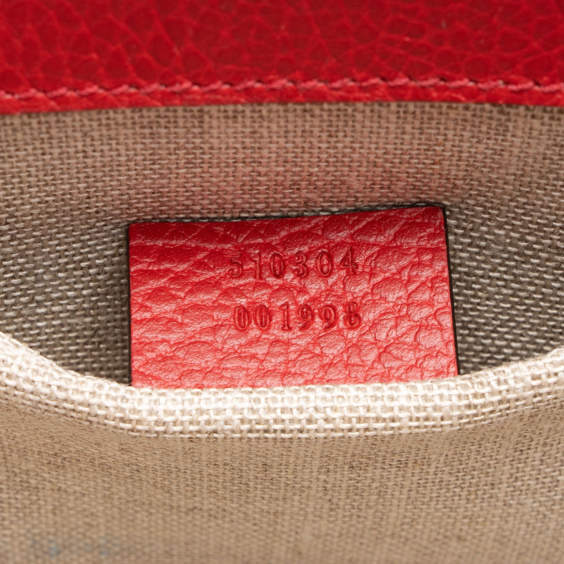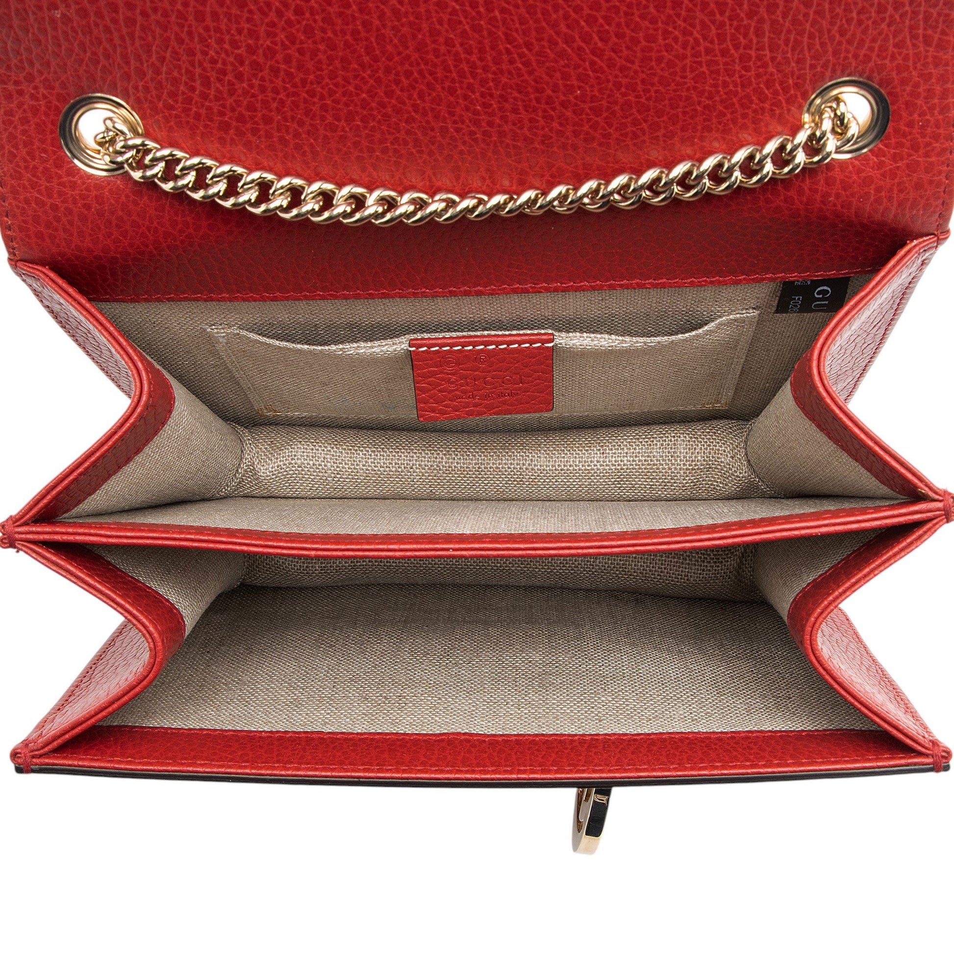 Condition Notes: Light scuffs to exterior bottom corners. Visible surface scratches to front logo closure. Surface scratches to chain shoulder strap. Light marks throughout interior. Please note: This handbag was an outlet item, marked by a circular G stamp on the interior label.