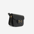The Gucci Horsebit Bag is a refined expression of the brand’s equestrian heritage. Featuring the iconic double ring and bar hardware, a signature element of Gucci’s genetic code, this small flap shoulder bag combines timeless design with modern sophistication. The hardware, inspired by the equestrian world, is beautifully paired with textured black leather for a sleek, structured look.